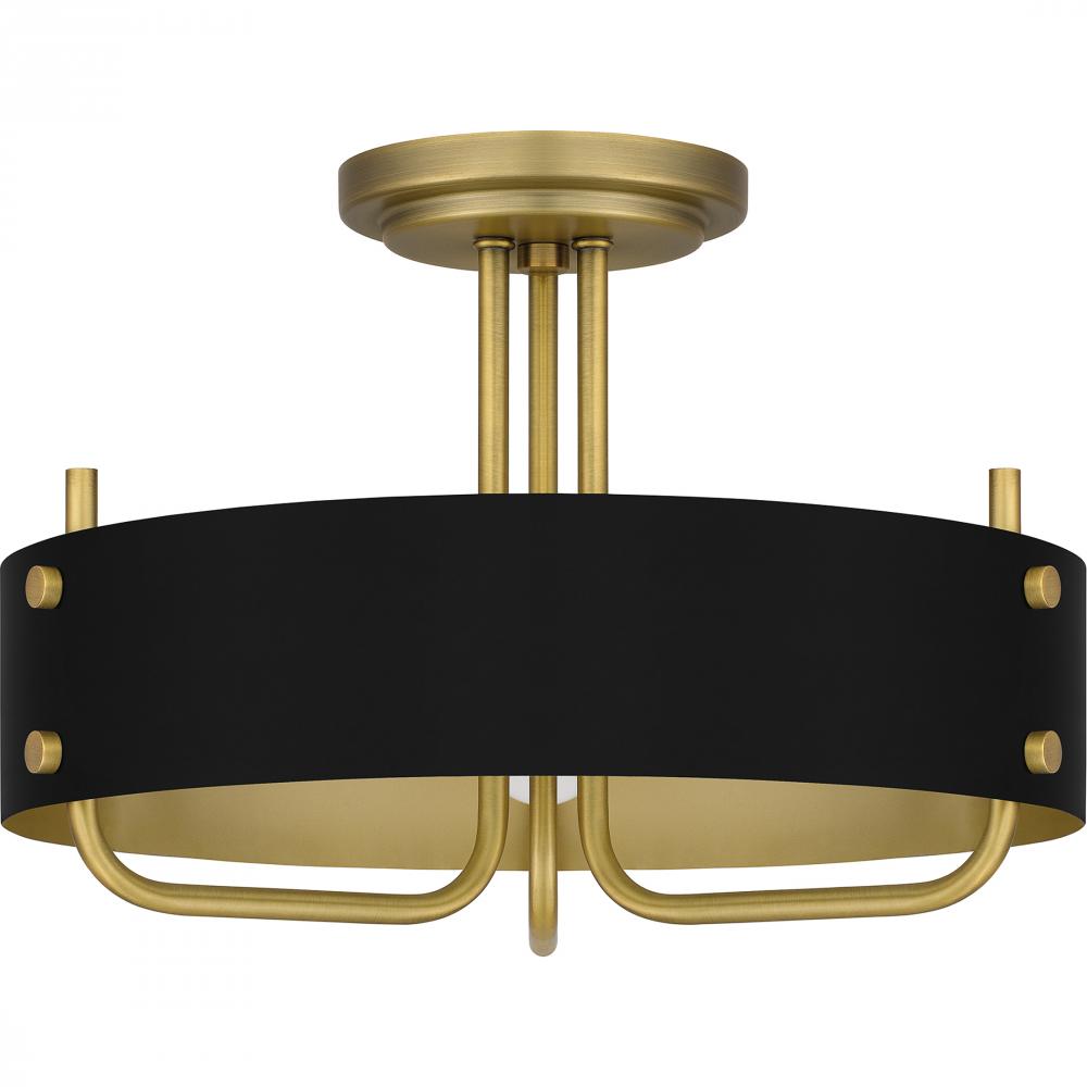 Madden is as modern as it is sculptural. The elongated black metal shades are enhanced by gold interiors and matching accents, creating a sense of contrast and warmth. With its geometric shape and aged brass finish, Madden makes a bold choice in any settin