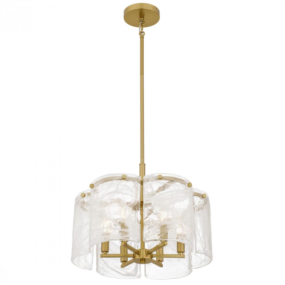 Maisie captures the soft poetry of air and light in motion. Gently curved panels of white swirl glass surround the fixture like flowing silk, their delicate patterns evoking wisps of clouds on a golden afternoon. Each glass piece is uniquely marbled, creat