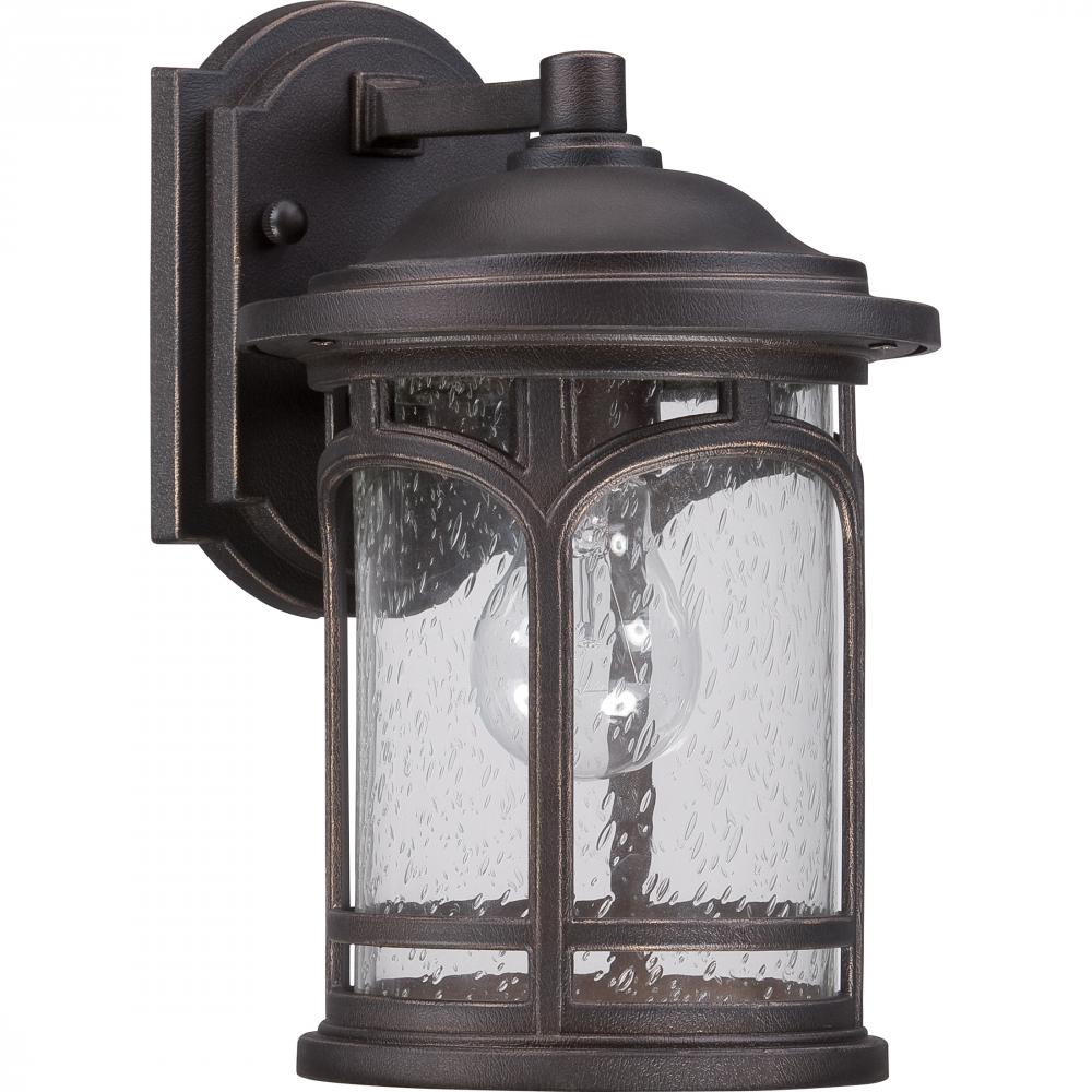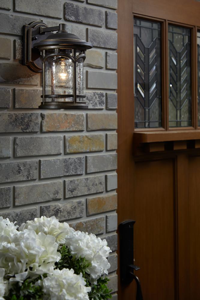 Marblehead is a rich masculine outdoor series and a welcome addition to the Quoizel Coastal Armour Collection. The stately form of the metal arches gives the clear seedy glass a window like appearance. Made from a new weather resistant outdoor composite