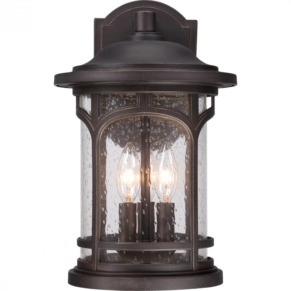 Marblehead is a rich masculine outdoor series and a welcome addition to the Quoizel Coastal Armour Collection. The stately form of the metal arches gives the clear seedy glass a window like appearance. Made from a new weather resistant outdoor composite