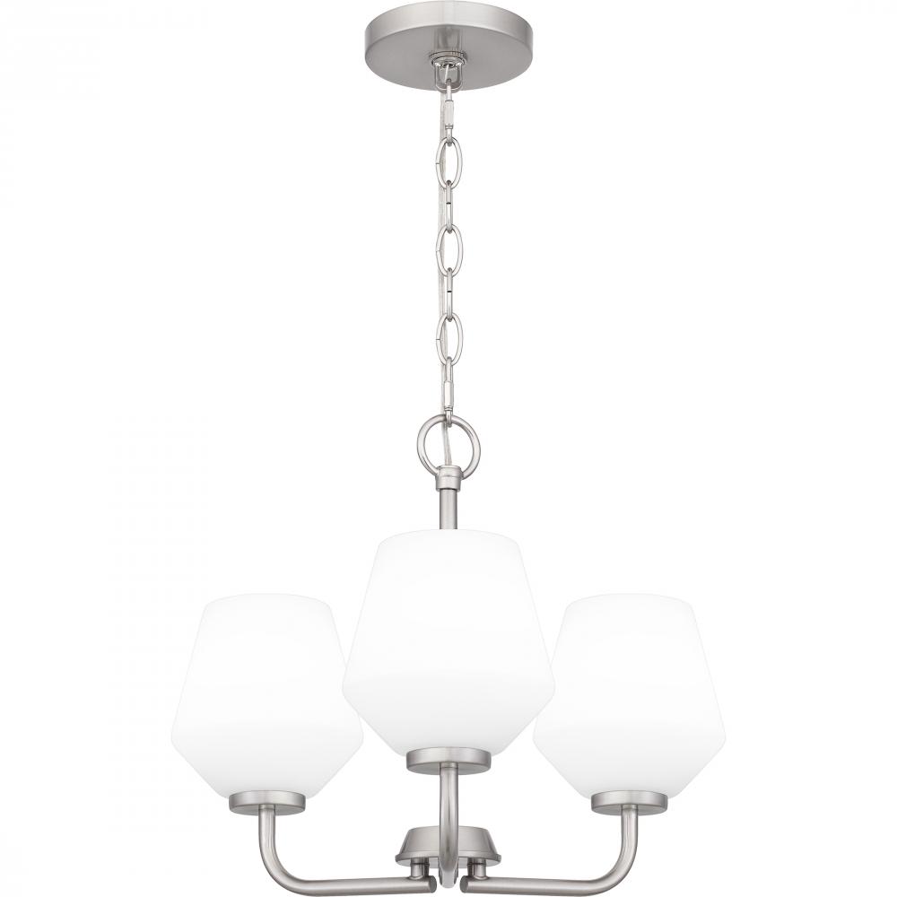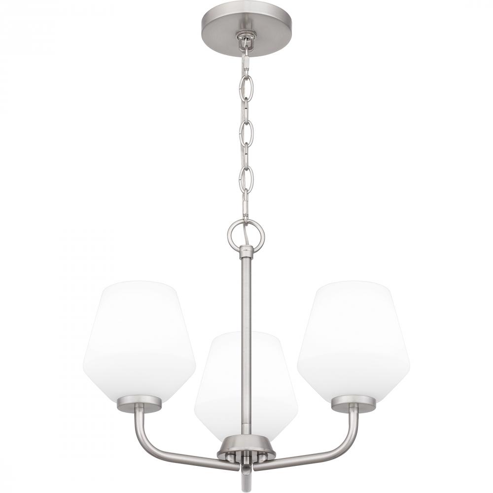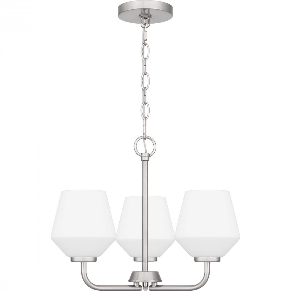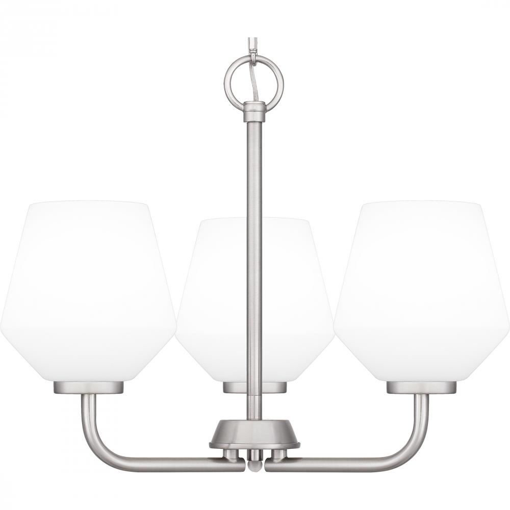 With its transitional styling and clean lines, Nielson is a perfect addition to any home decor. Complemented by opal etched glass shades, all fixtures are available in your choice of brushed nickel or matte black finish. Nielson is available in a variety o