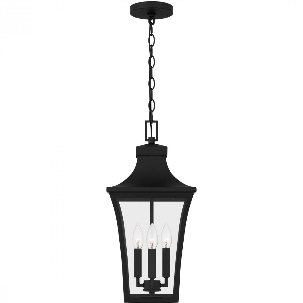 The Quentin mini pendant light offers a traditional design that complements a variety of interiors and exteriors. The tapered frame is finished in a classic earth black finish. Clear glass panels allow the natural beauty of the bulb to shine through, provi