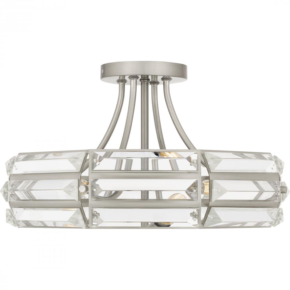 With a classic finish and clear crystal glass, the Padilla semi-flush mount light is all about sparkle. The crystal glass creates a dazzling illumination effect, adding instant luxury to any setting. Available in brushed nickel or matte black, Padilla ceil