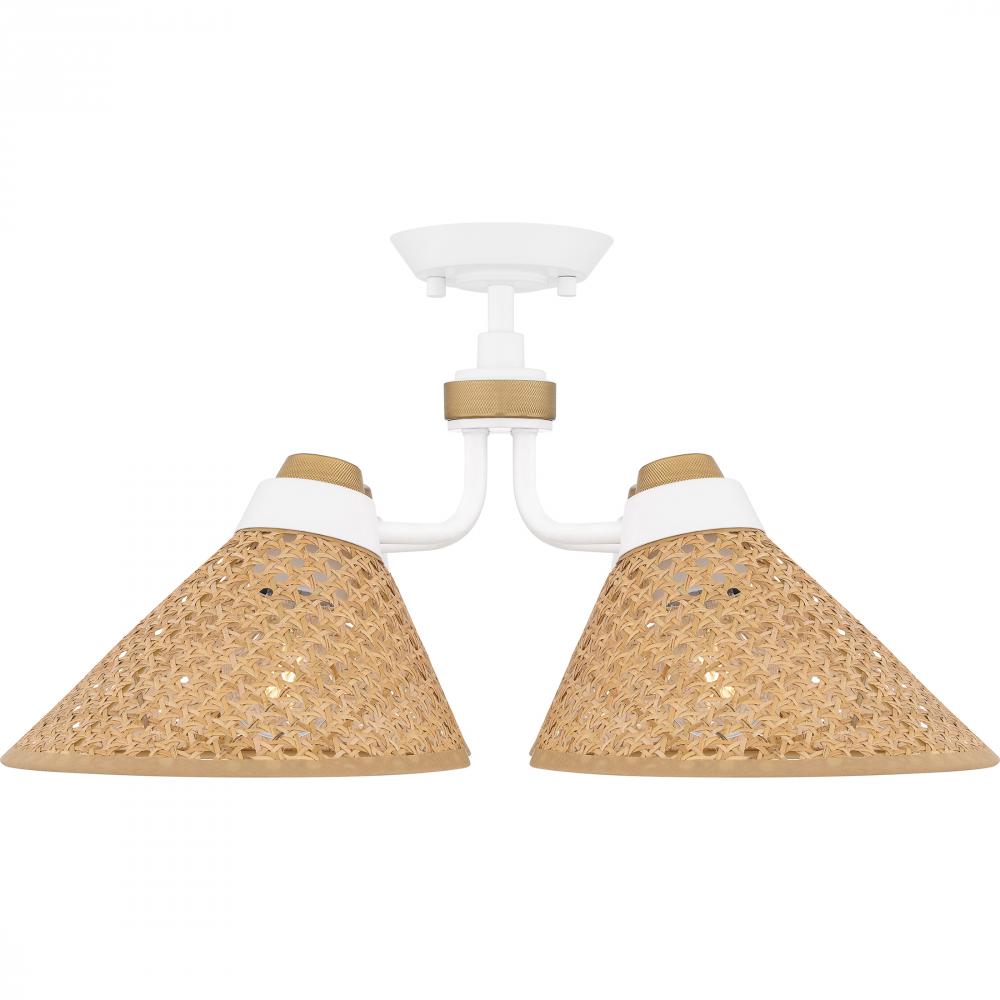 Available as a semi-flush mount or pendant light, Graft offers a transitional design that adds subtle style to any space. Choose the matte black finish with opal etched glass shades and brass industrial accents - or choose the white finish with rattan sha