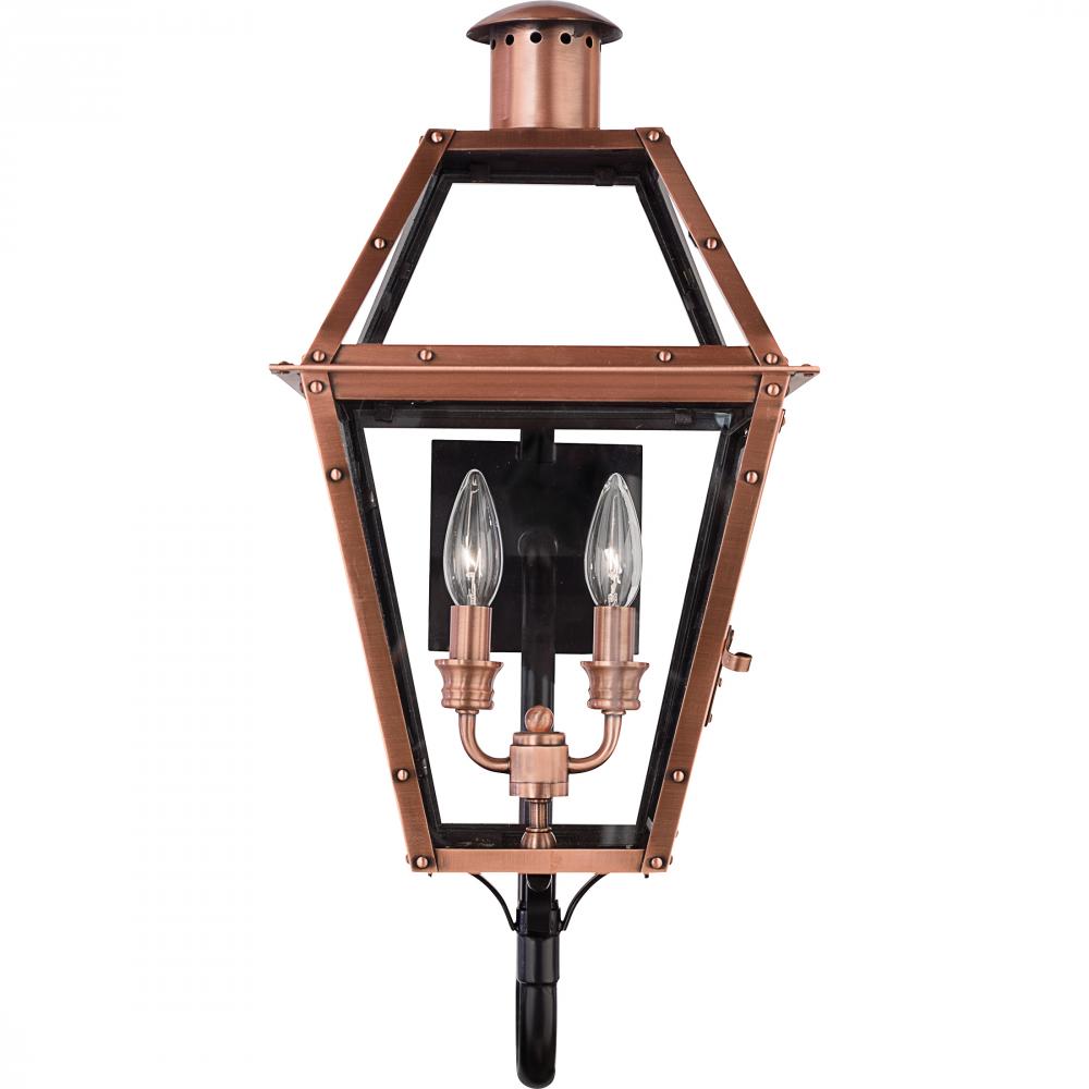 From the Charleston Copper Lantern Collection this piece gives you the historic look of gas lighting but without the hassle of a propane feed. It is all electric solid copper and hand riveted giving your home the romantic reproduction style of antiqu