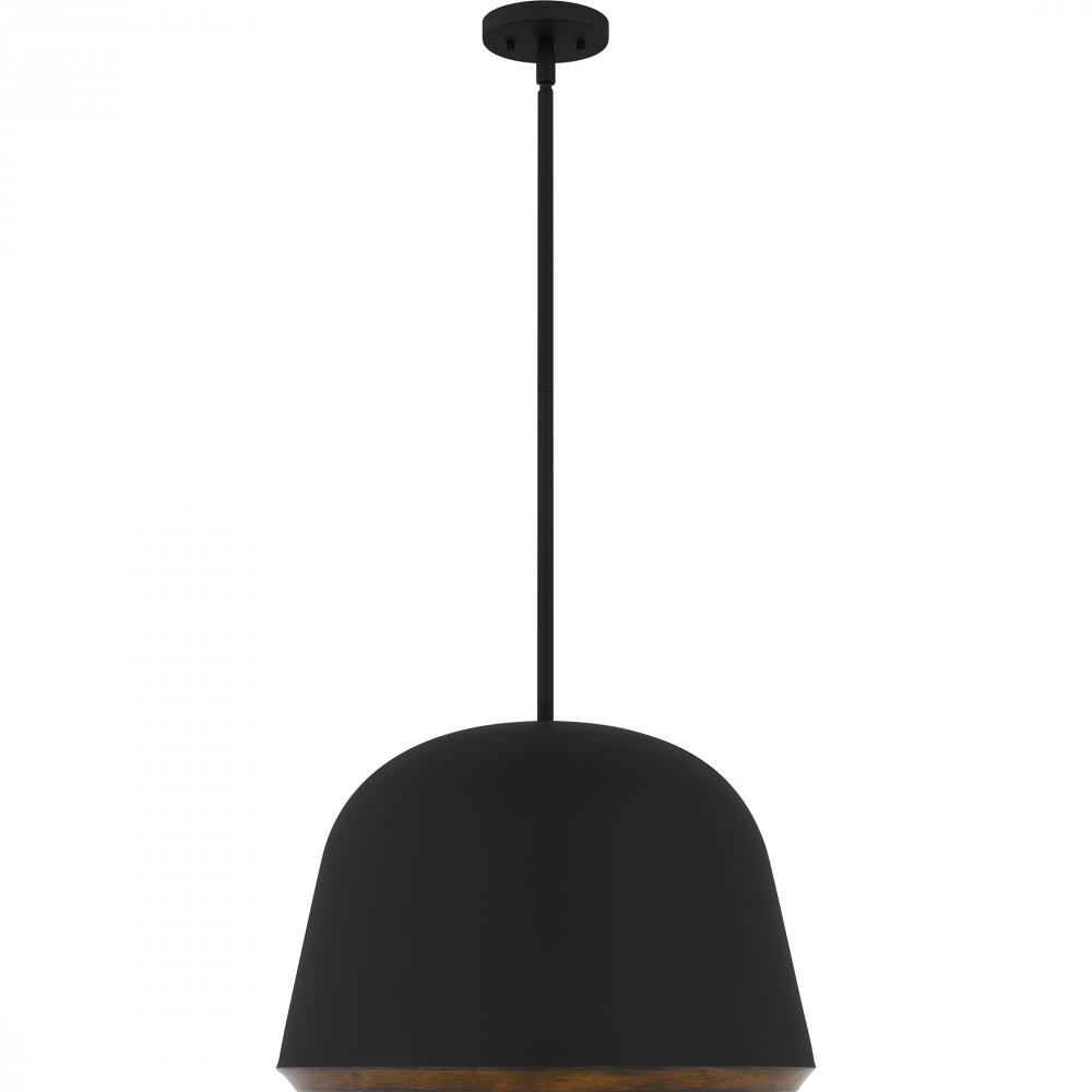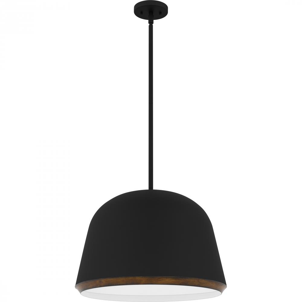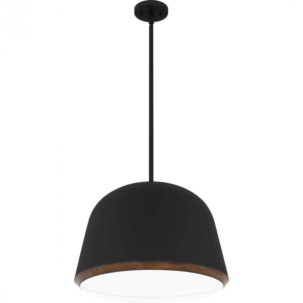 Combining a matte black finish and distressed wood accents, Tamara is a perfect addition to farmhouse décor. The black finish extends from the metal shade to the canopy for a clean and cohesive look, and a slightly distressed walnut band accentuates the d