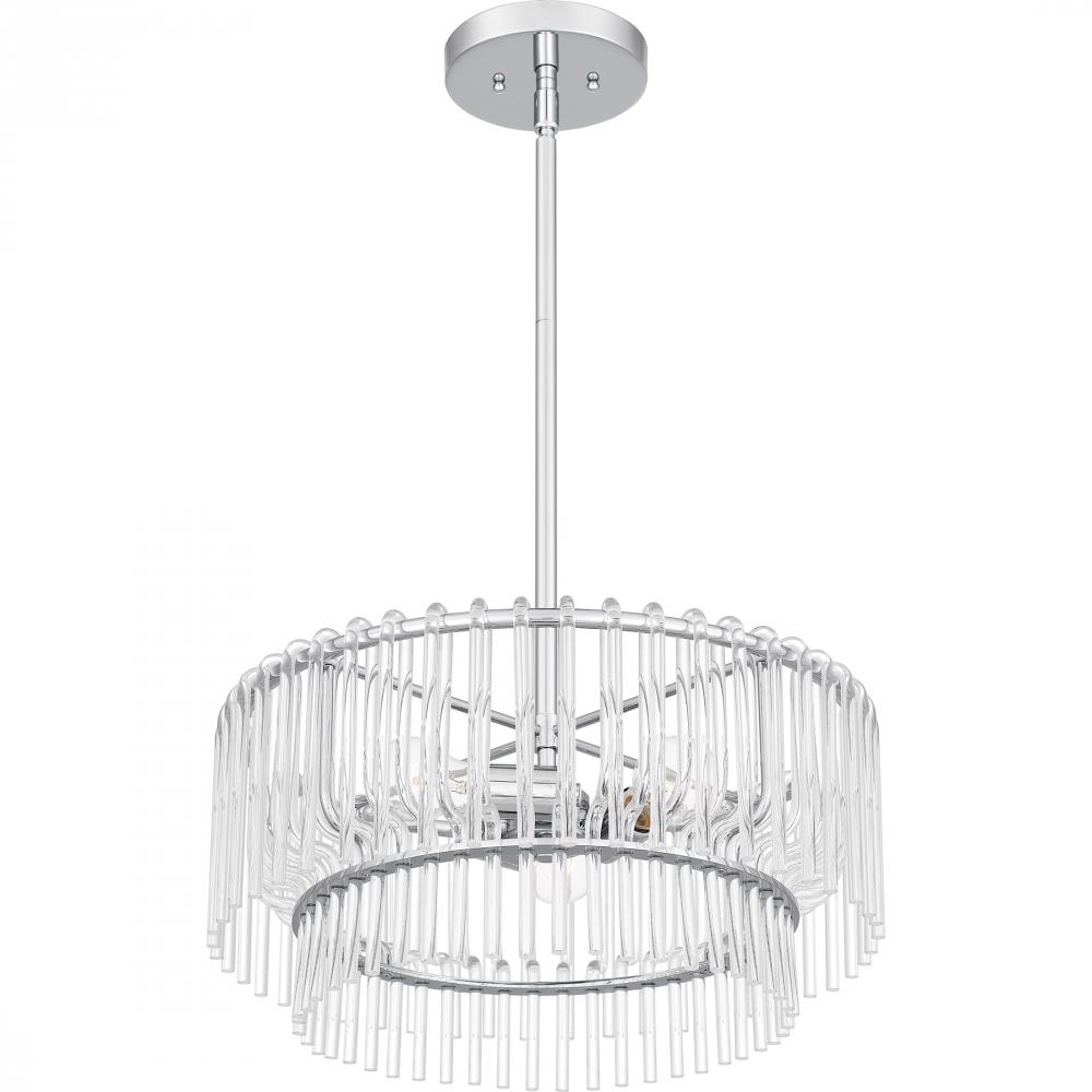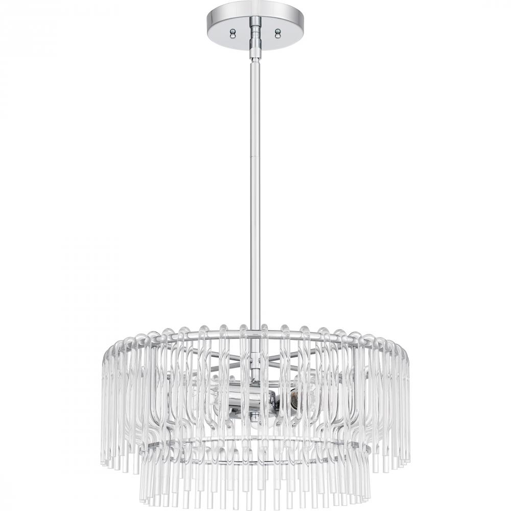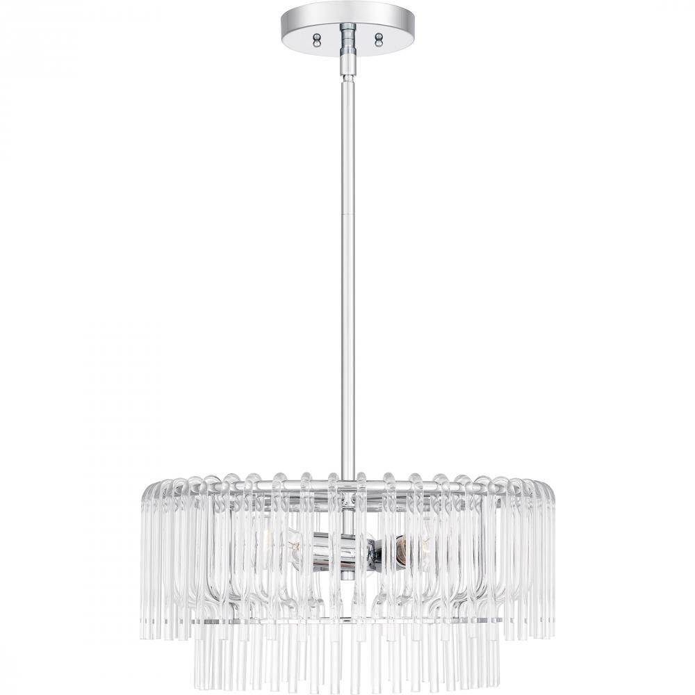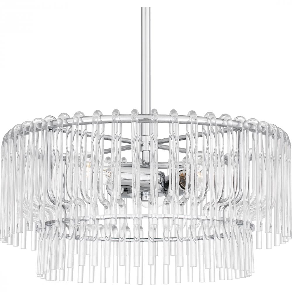 Part of the popular Platinum by Quoizel collection, Tayshia is a true statement of beauty. The clear acrylic shade features a cascading layered design that adds a fun, airy feel. With a sleek polished chrome finish, the Tayshia ceiling light is a perfect c