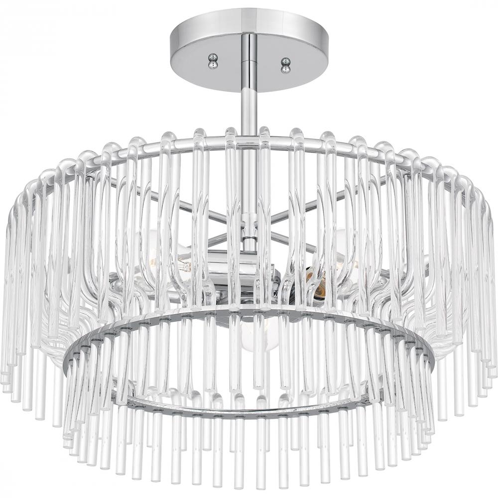 Part of the popular Platinum by Quoizel collection, Tayshia is a true statement of beauty. The clear glass shade features a cascading layered design that adds a fun, airy feel. With a sleek polished chrome finish, the Tayshia ceiling light is a perfect com