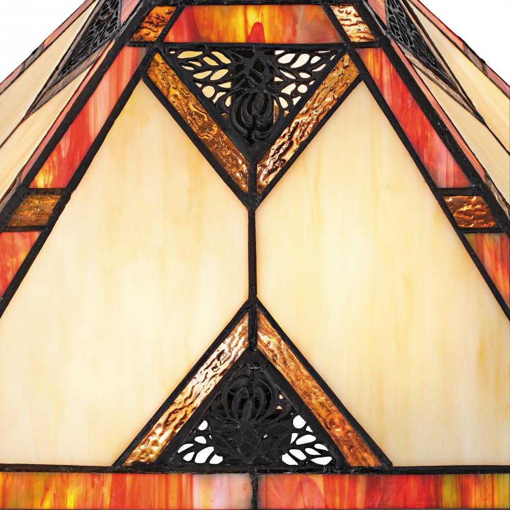 The Aiden table lamp brings a touch of classic elegance to any room with its multicolor Tiffany-style glass shade. The intricate glasswork adds a vibrant and artistic flair, creating a captivating focal point in your space. The lamp features a sturdy resin