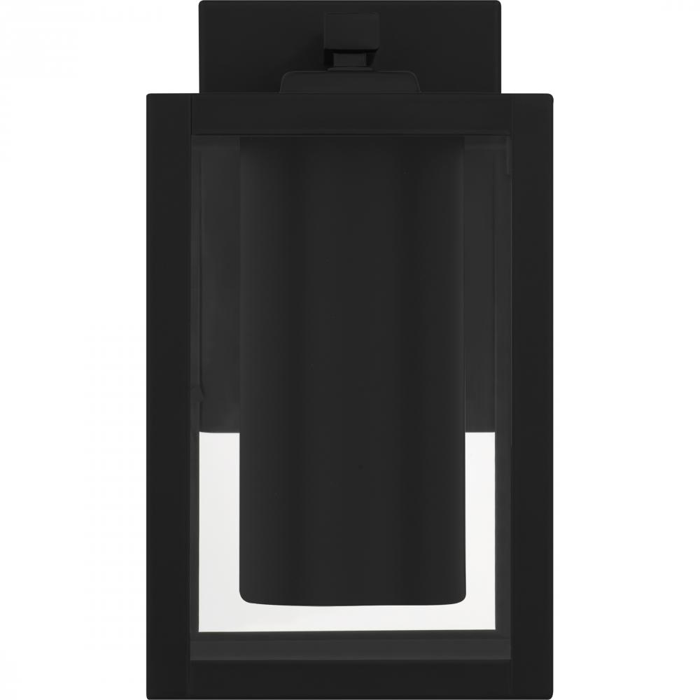 The clean lines and hand-riveted accents make the Westover outdoor wall lantern a modern industrialists dream. A long rectangular framework provides an unobstructed view of the lanterns sleek interior, highlighted by an earth black finish and clear beveled