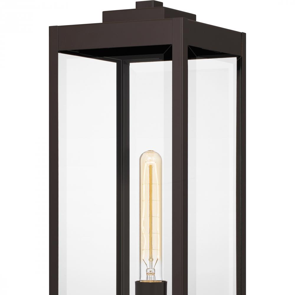 The clean lines and hand-riveted accents make the Westover outdoor lantern collection a modern industrialists dream. A long rectangular framework provides an unobstructed view of the lanterns sleek interior. The choice of earth black, antique brass, indust