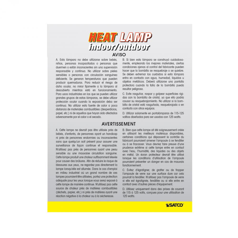SATCO NUVO offers a full line of incandescent heat lamps, providing a reliable and versatile heating solution designed to generate focused heat for a variety of applications. With four unique shapes to choose from-PAR38, BR38, R40, and BR40-these lamps com