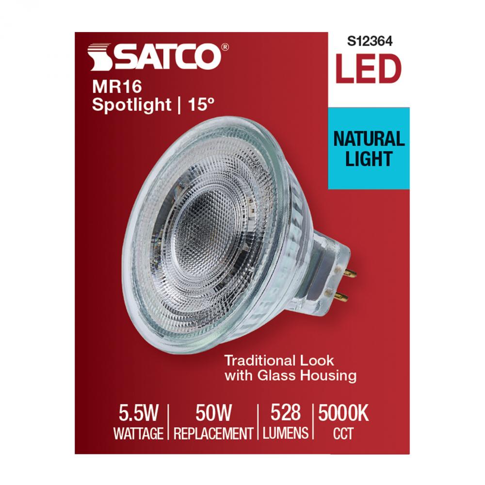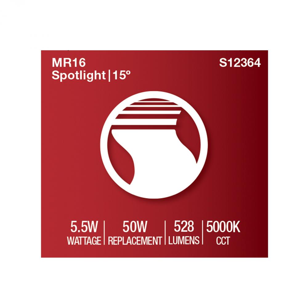 5.5 Watt MR16 LED Spotlight; 5000K CCT; GU5.3 Base; 12 Volt