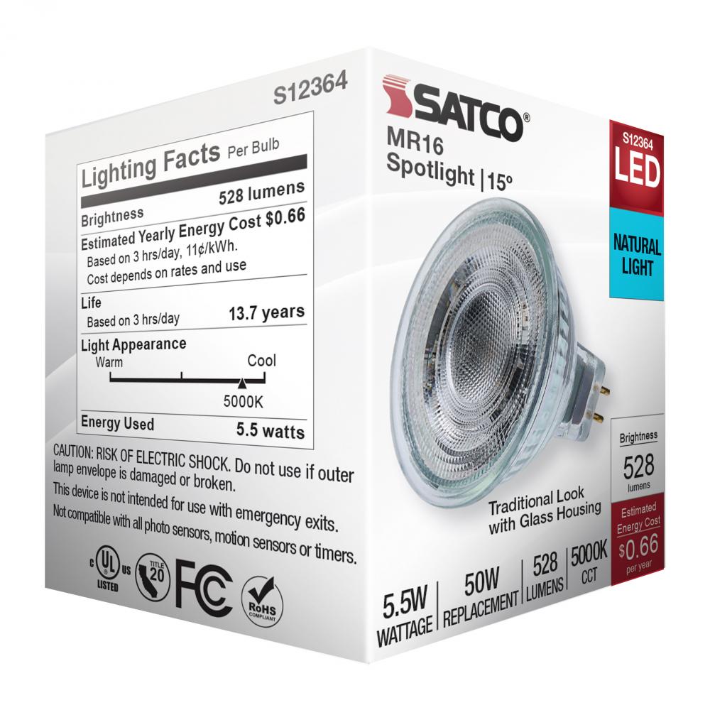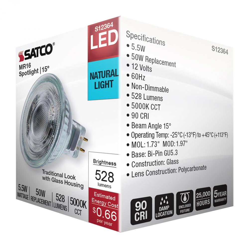 SATCO S12364 MR16 lamps provide high color accuracy with a 90 CRI and are dimmable for customizable lighting. These lamps are also damp location rated, and suitable for use in enclosed fixtures. Perfect for a variety of residential and commercial applicati