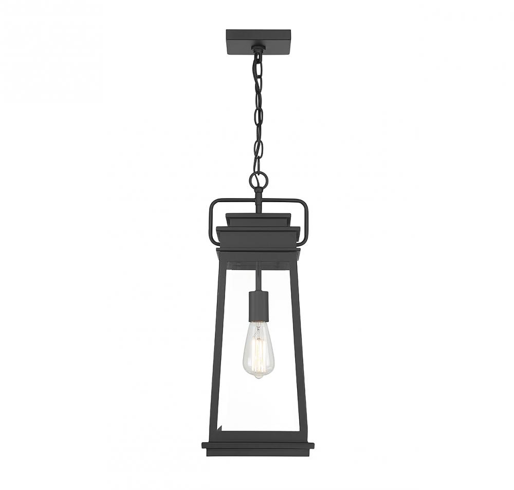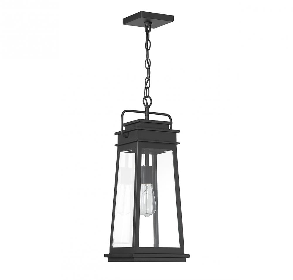 The Savoy House Boone 1-light outdoor hanging light showcases a classic lantern-style lighting look with panes of clear beveled glass and a matte black finish that adds versatility. Boone is 22" in height and 8.25" in width. It uses 1 standard size bulb with a max of 60 watts (bulb not included).