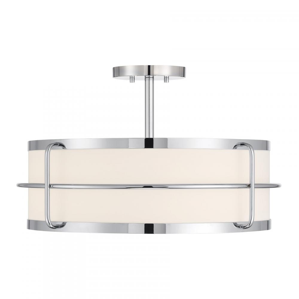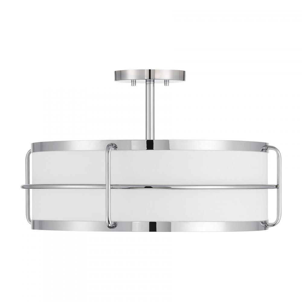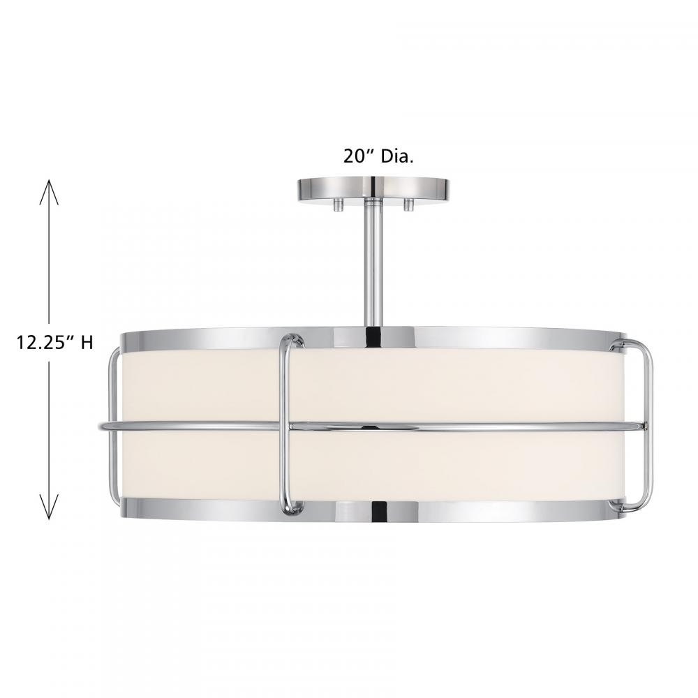 The Savoy House Chauncey 4-light semi-flush mount proves that utilitarian style can be glamorous, too! It showcases a white fabric shade that is accentuated by sleek, chic cage detailing finished in shining Chrome. Chauncey is 12.25" in height and 22" in width, making it ideal for illuminating larger spaces. It uses four standard size bulbs of up to 60 watts per bulb. Bulbs not included.