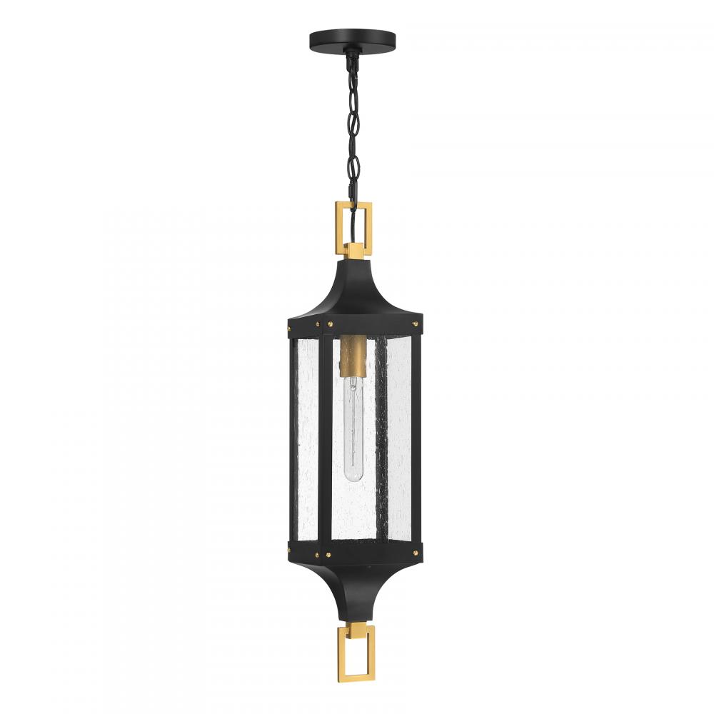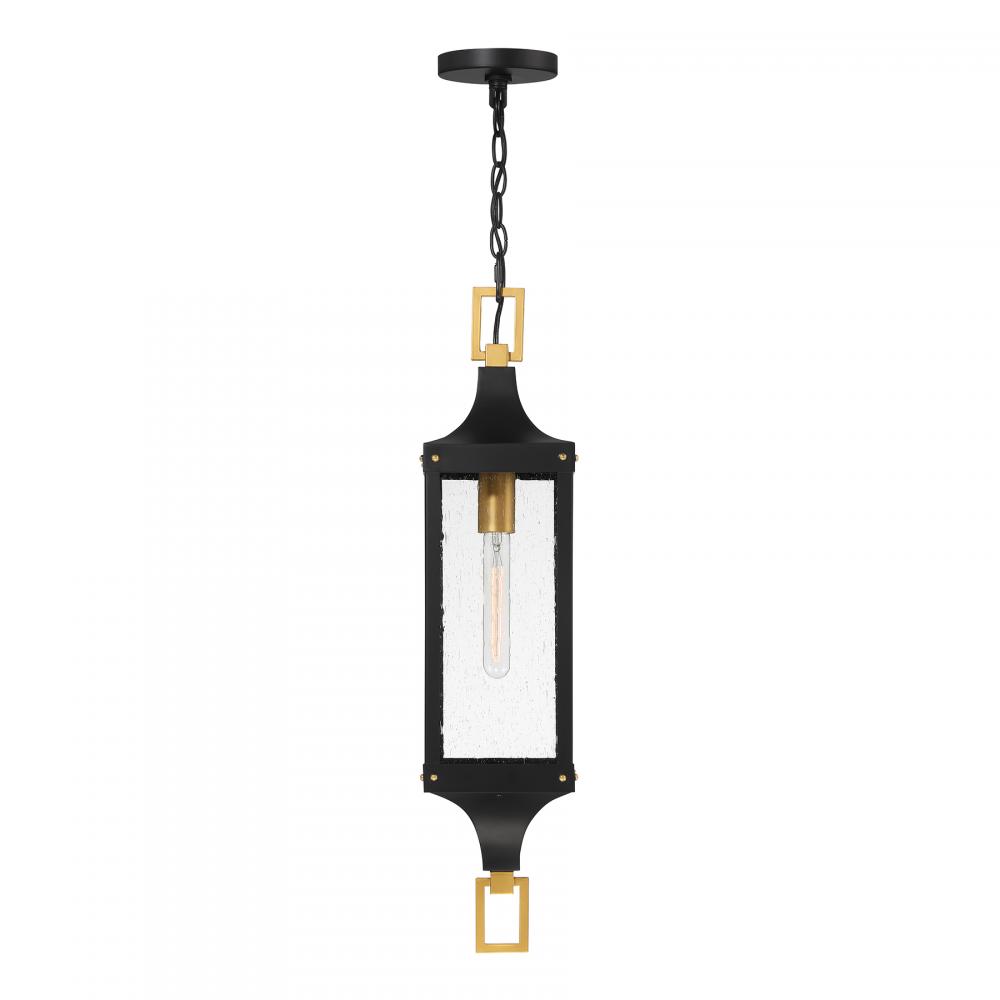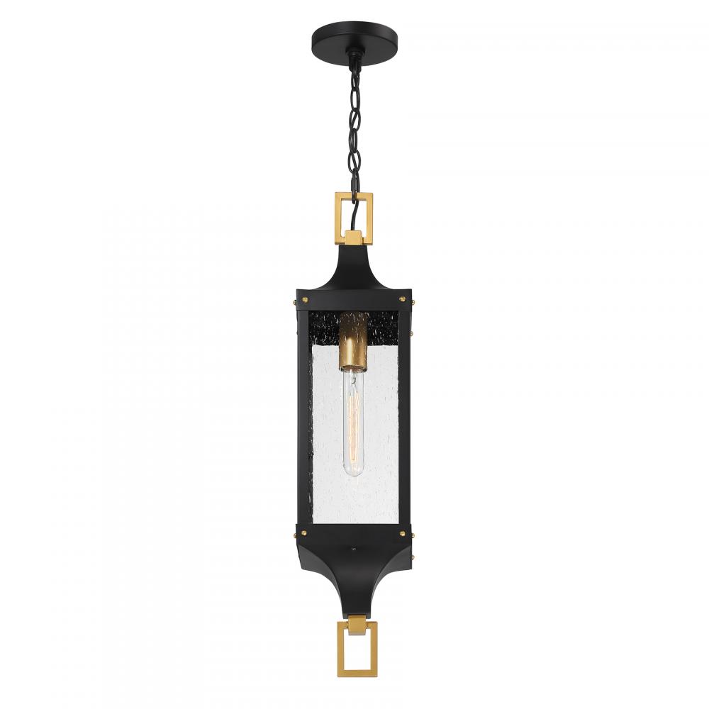 Savoy House 5-277-144 - Glendale 1-Light Outdoor Hanging Lantern in Matte Black and Weathered Brushed Brass