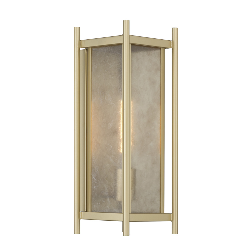 Warm your outdoor spaces with the luminous glow of the Savoy House Jacobs 1-light outdoor wall lantern. Clear mica glass introduces organic texture while the Serene Brass finish enriches the look with inviting warmth. Jacobs is 16" tall, 5.75" wide and extends 6" from the wall. Uses one standard size bulb of up to 60 watts. Bulb not included. Wet area rated.