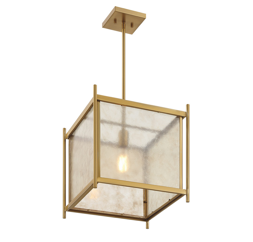 Create a warm and welcoming glow with the geometric chic Savoy House Jacobs 1-light pendant. The clear mica glass shade pairs beautifully with the Warm Brass finish and imparts eye-catching texture. Jacobs is 14" in width and has an adjustable height ranging from 17.5" to 71.5". Comes with four 12" downrods and one 6" downrod. Uses one standard size bulb of up to 60 watts. Bulb not included.