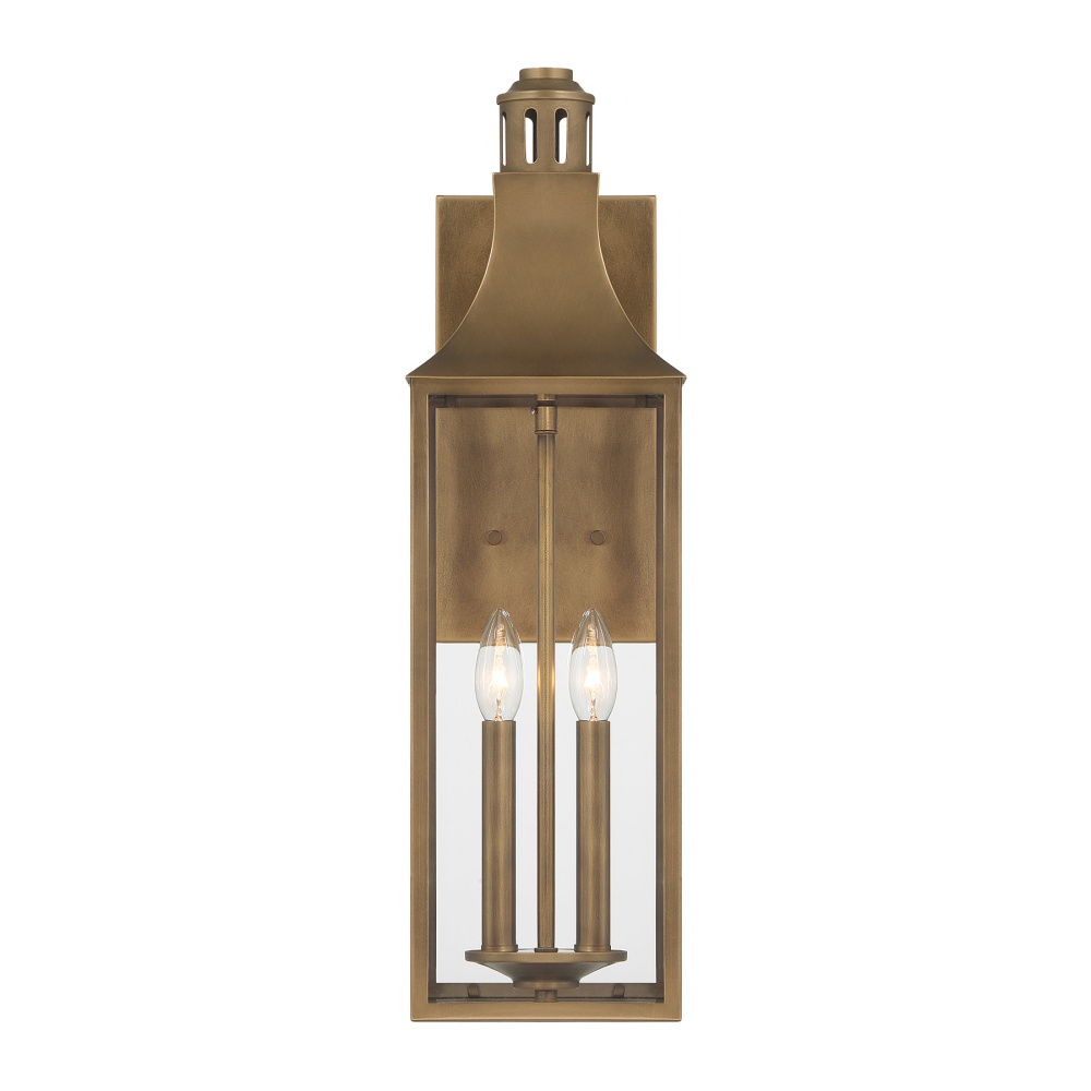 Bring timeless elegance to your home’s exterior with the Savoy House Lancaster 2-light outdoor wall lantern. The collection’s tall, poised profile and vintage-inspired roofline amplify curb appeal while clear glass ensures bright, radiant illumination. Its Atlas Bronze finish enriches the design with warmth and a classic sense of place. Lancaster measures 23.5" tall, 7" wide, and extends 9.25" from the wall. Uses two candelabra bulbs of up to 60 watts each (not included). Wet area rated.