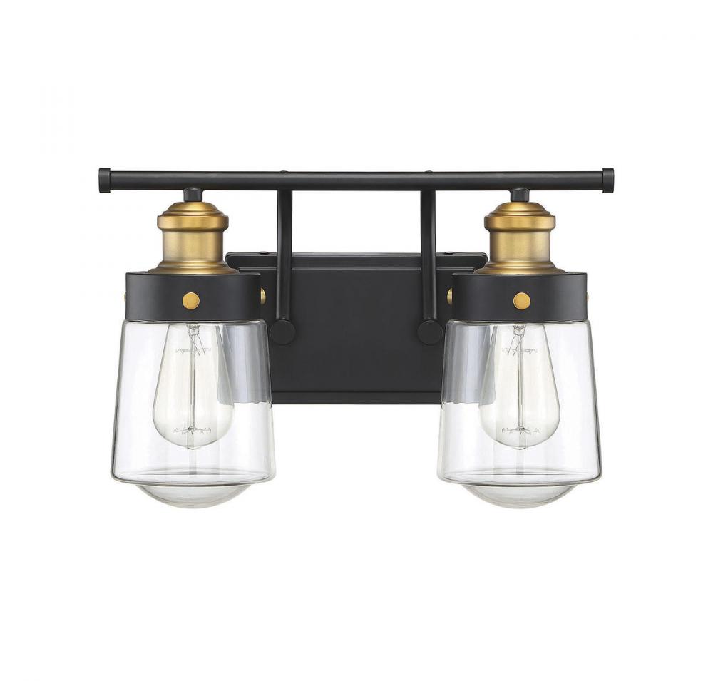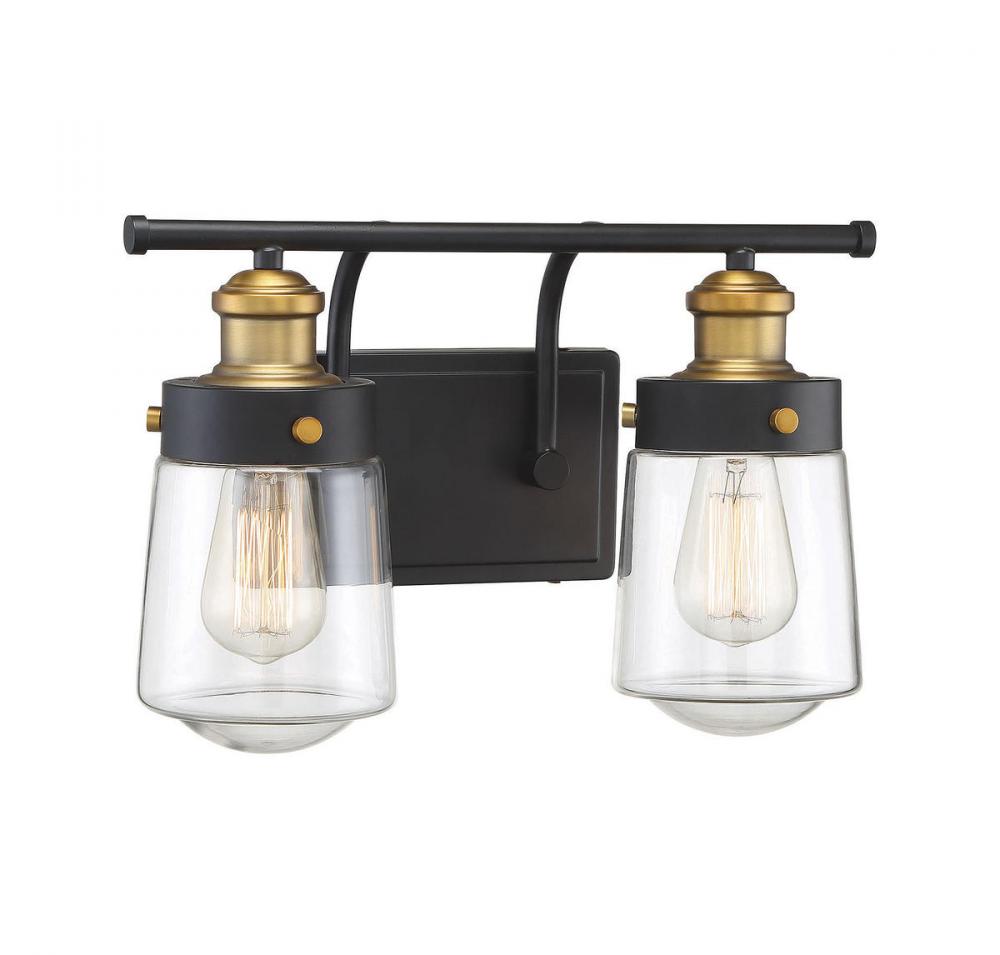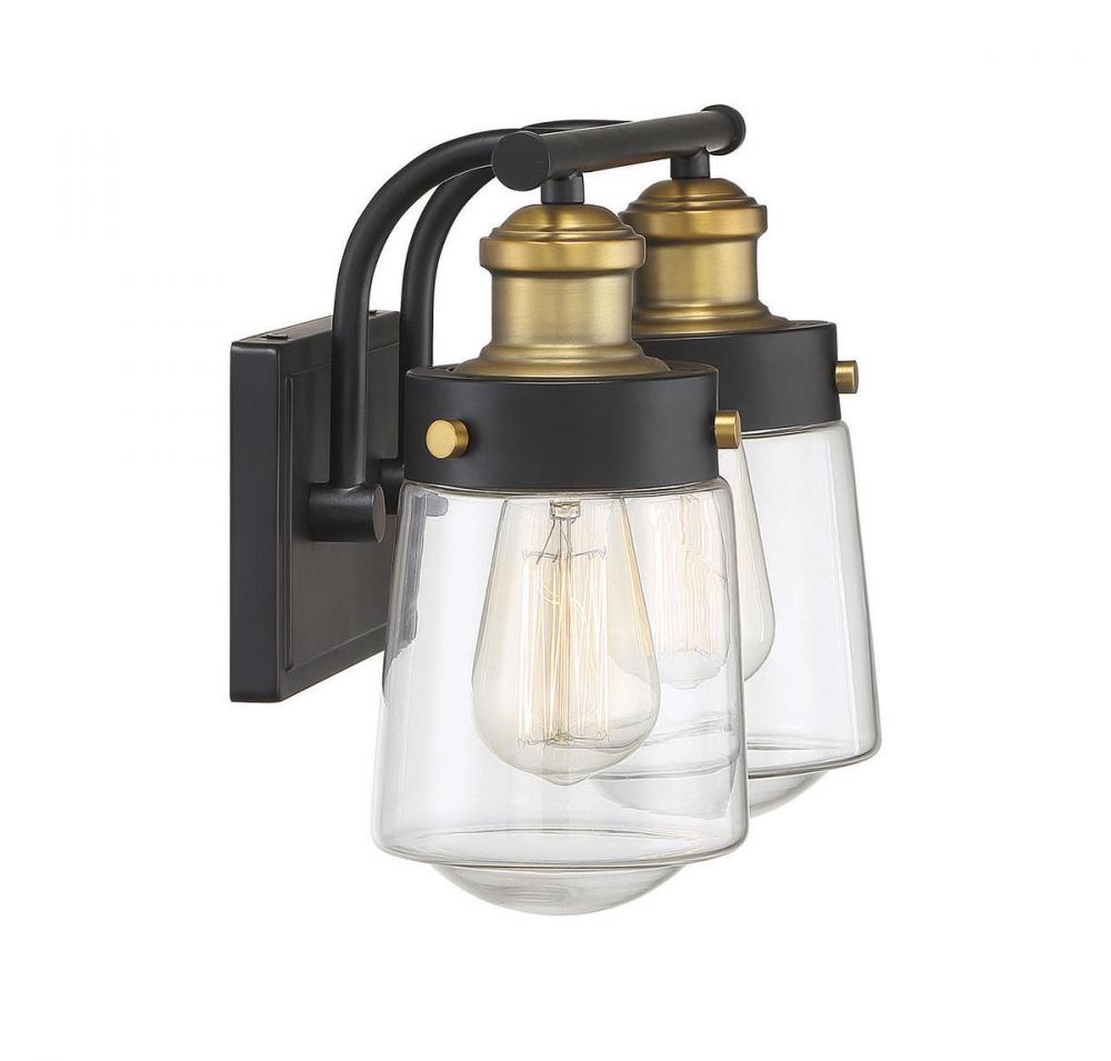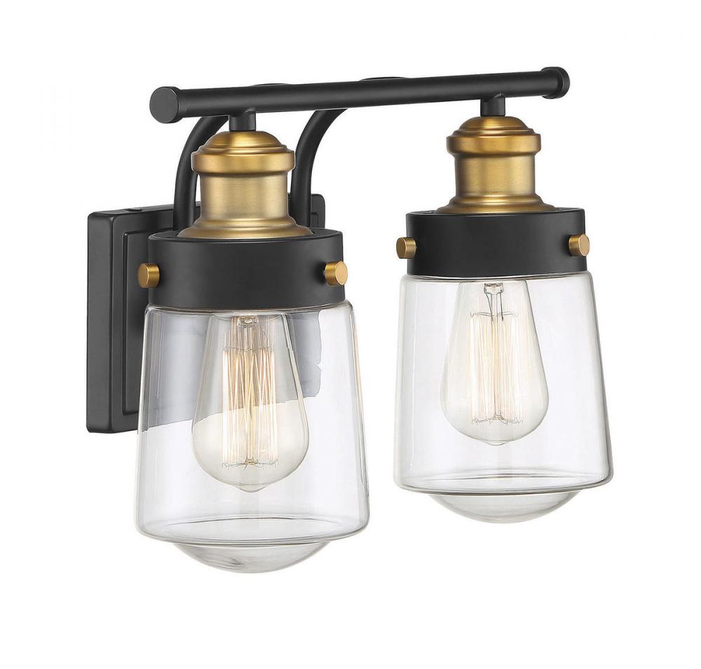Macauley 2-Light Bathroom Vanity Light in Vintage Black with Warm Brass