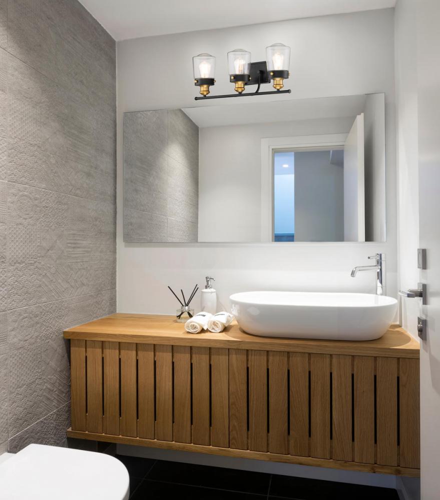 Macauley 3-Light Bathroom Vanity Light in Vintage Black with Warm Brass