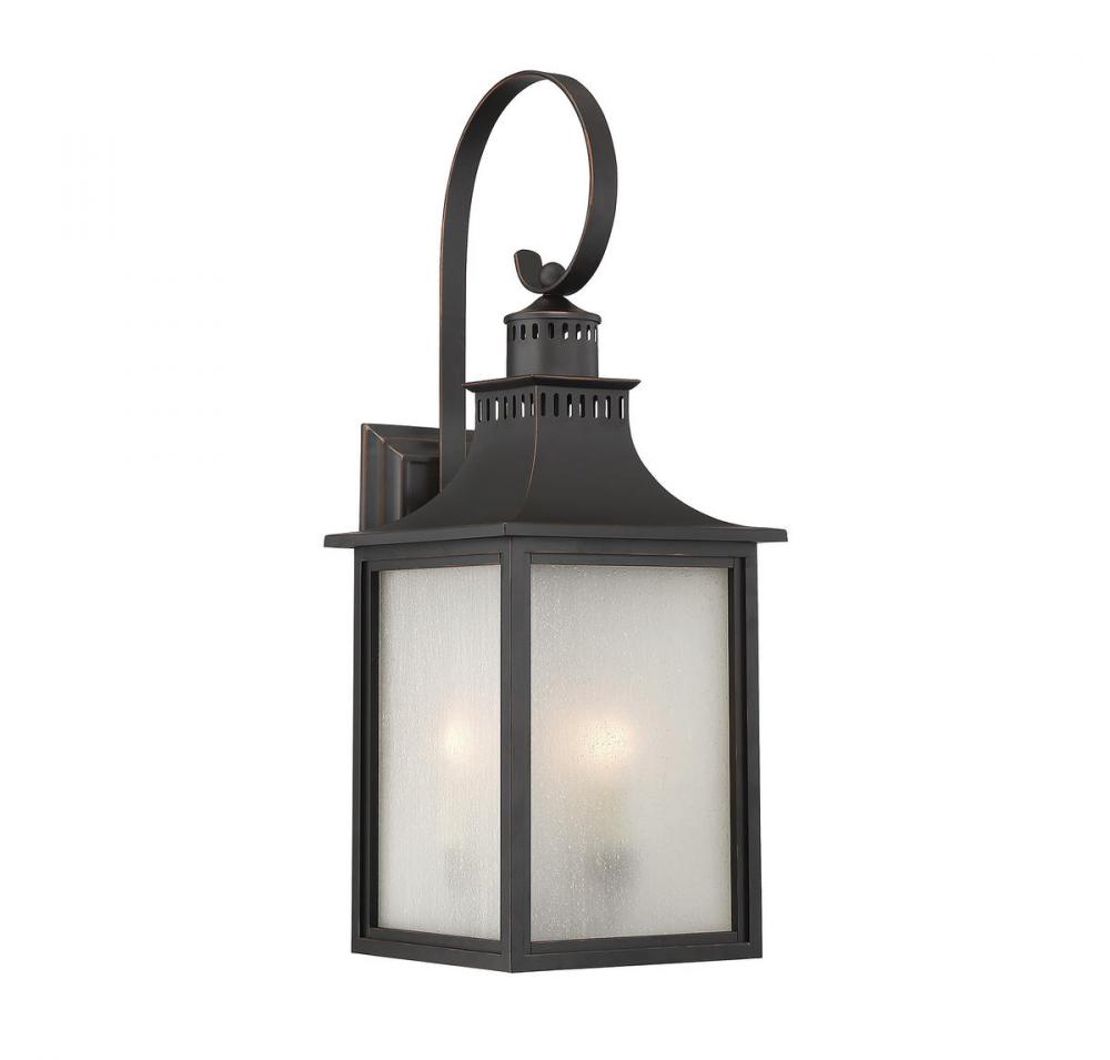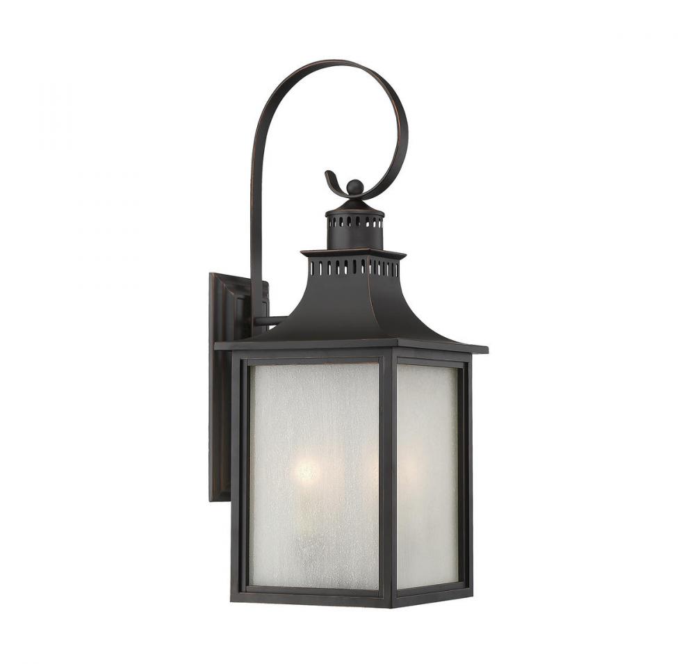 The Savoy House Monte Grande 4-light outdoor wall lantern is an elegant, clean-lined version of a classic box-shaped lantern. It’s a timeless and pleasing style from designer Karyl Pierce Paxton, a wall lantern that will illuminate the exterior of your home and welcome you and your guests with a familiar, traditional aesthetic. The English bronze finish is a wonderful neutral and the panels are made of beautiful pale cream seeded glass. Four 40W candelabra size bulbs provide plenty of soft light. This lantern is 10" wide, 23.75" high and UL rated for wet locations.