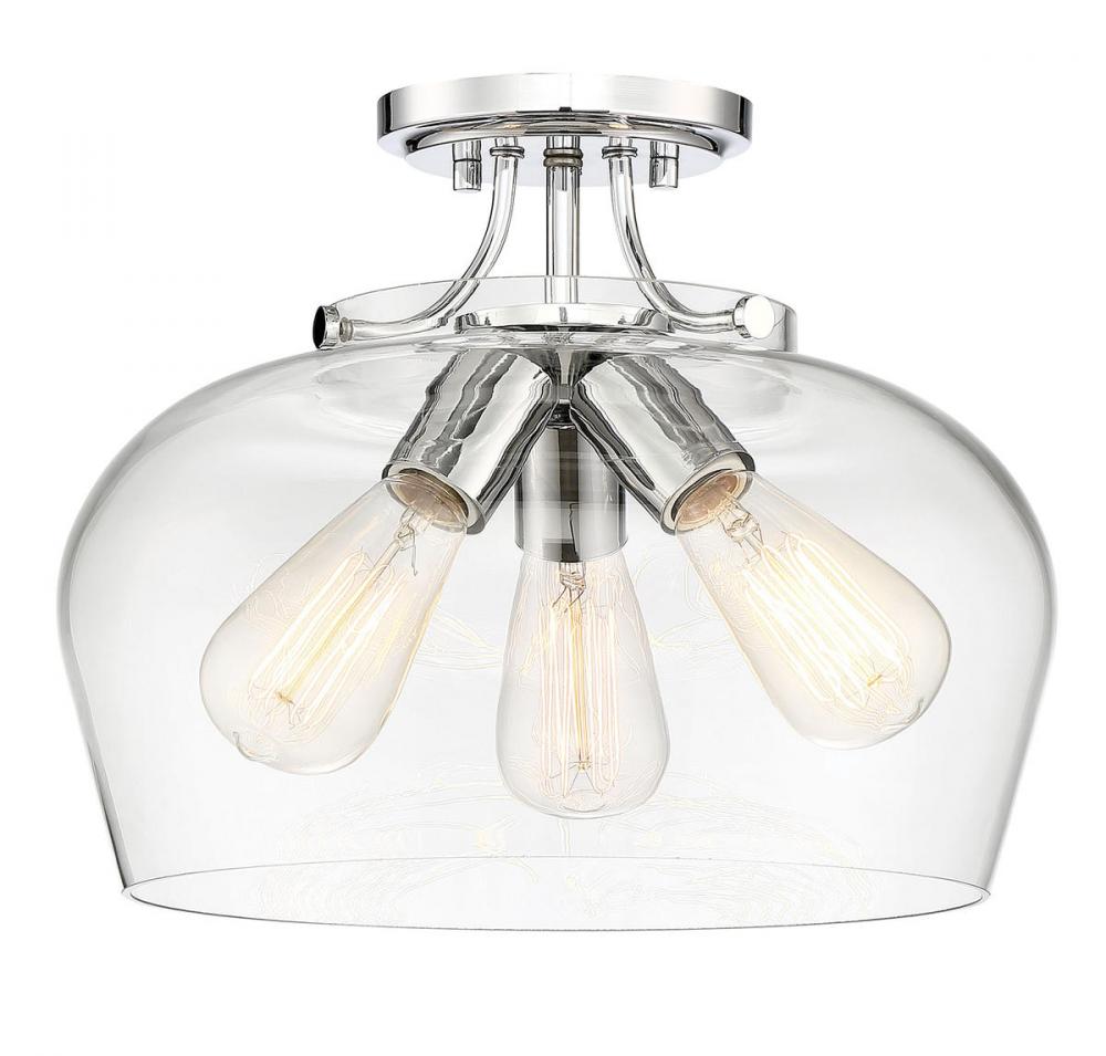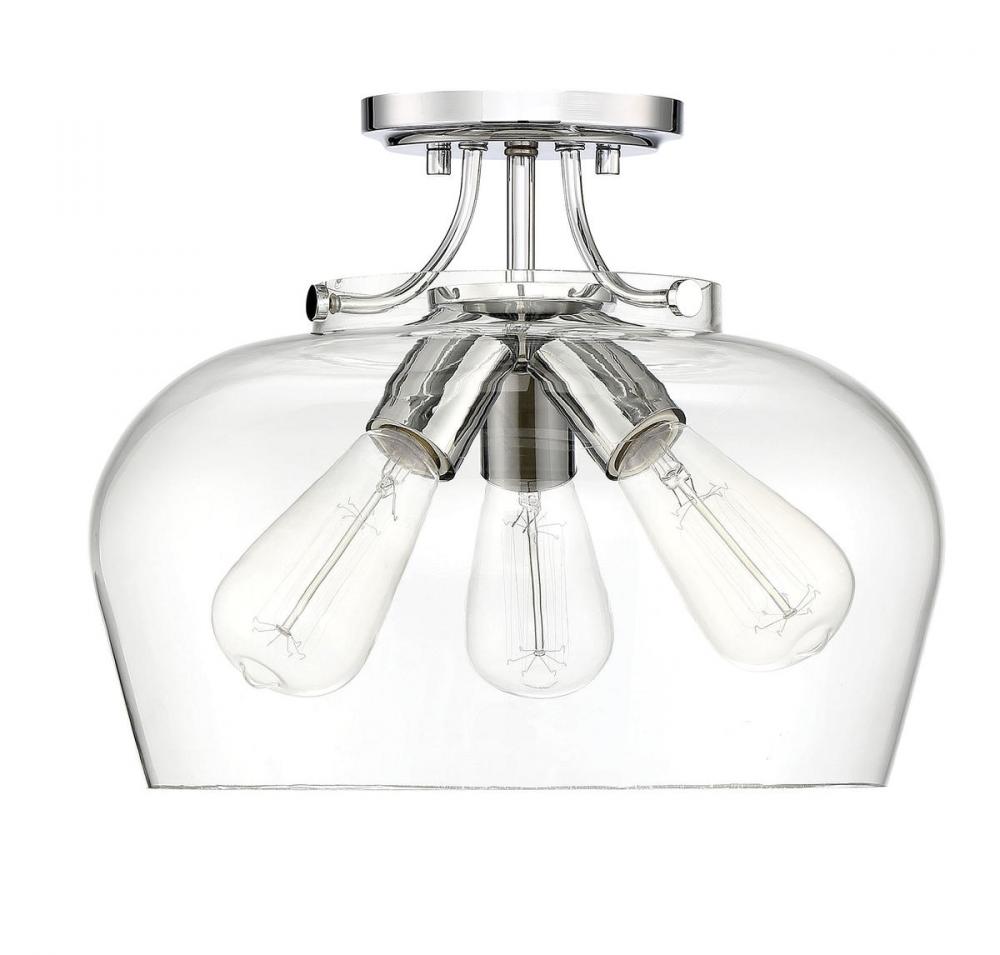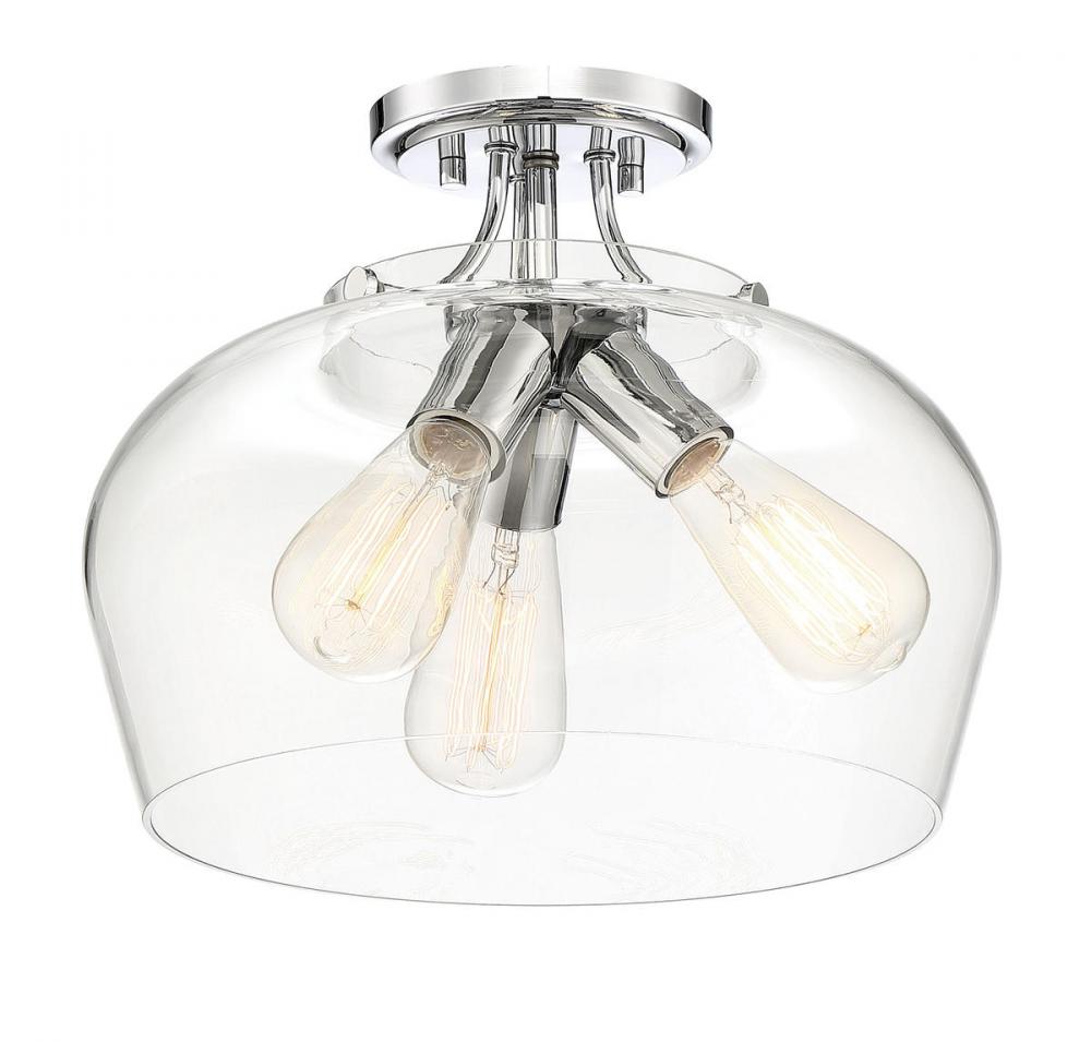 Find close-to-ceiling light with understated elegance when you get the Savoy House Octave 3-light ceiling semi-flush mount. It features a shade of curved glass, minimal detailing and a polished chrome finish. Semi-flush mounts can be used on the ceiling of pretty much any interior room, including foyers, hallways, stairways, closets, bathrooms, bedrooms, kitchens and more! Bulbs not included. Try using stylized bulbs like Edison or tubular for a different look! The polished chrome finish can be paired with chrome hardware or mixed with hardware in other finishes. Try the Octave with glam, transitional or contemporary style rooms for a chic look. When you choose a Savoy House lighting fixture, you can be certain you've selected a piece that will withstand the test of time.