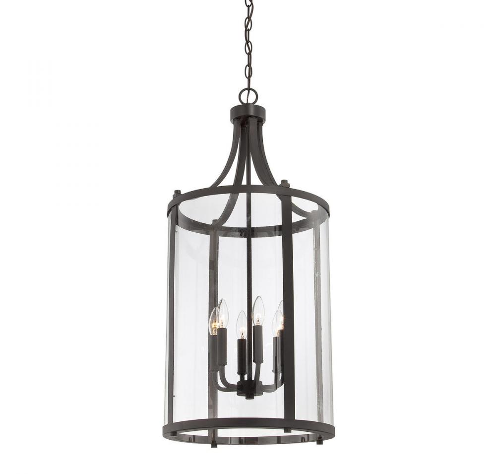 This sleek, cylindrical Penrose 6-light foyer light from Savoy House is an excellent choice for lovers of stylish modern design. It features clear glass and is finished in bold English bronze. Foyer lights are often used in foyers and entryways, but can also be used in great rooms, kitchens, offices and bedrooms too! Bulbs not included. Try using stylized bulbs for a different look! The English bronze finish can be matched with bronze hardware or mixed with hardware in other finishes. Bring Penrose into rooms of any style, especially transitional or classic, for a big touch of lighting allure. When you choose a Savoy House lighting fixture, you can be certain you've selected a piece that will withstand the test of time.