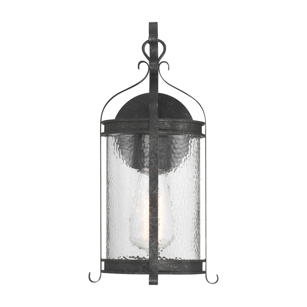 The Savoy House Preston 1-light outdoor wall sconce delivers timeless character with a touch of handcrafted charm. Its elongated body frames clear pebbled glass that catches daylight beautifully and creates welcoming nighttime illumination. Subtle flourishes, including a shepherd’s hook detail, reinforce the classic aesthetic. An Iron Oxide finish with distressed texture adds depth and vintage appeal. Preston is 14.13" in height, 7" in width, and extends 8" from the wall. Uses one standard size bulb of up to 60 watts (bulb not included). Wet area rated.