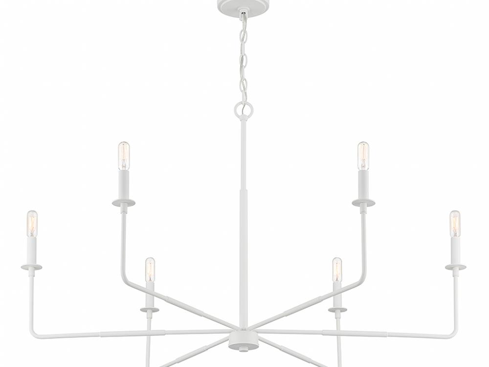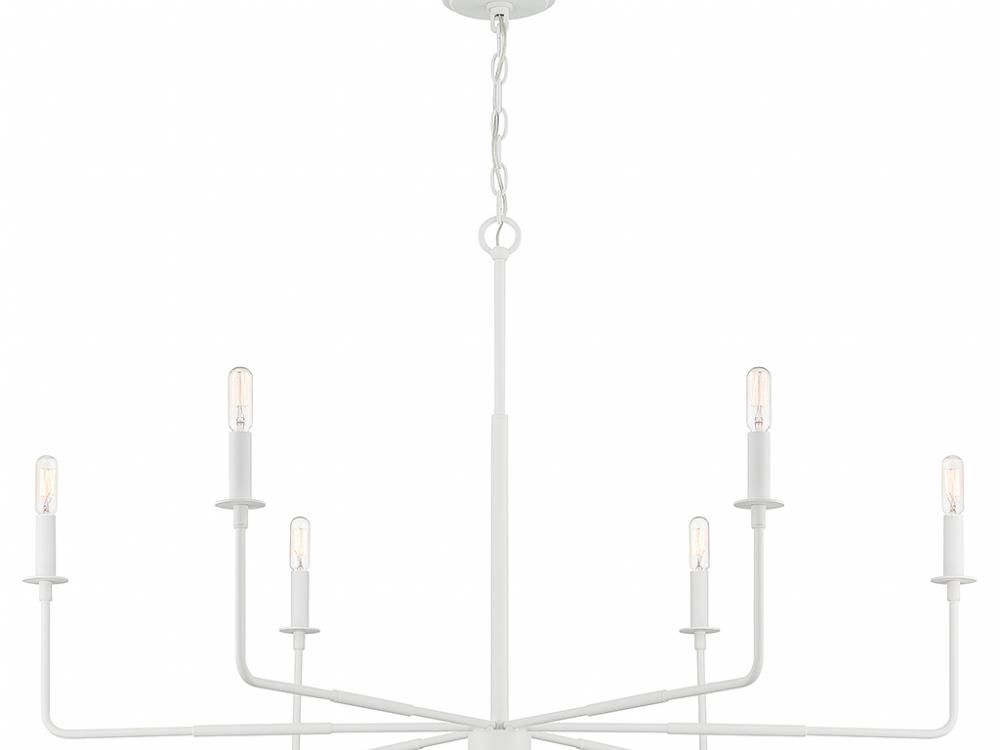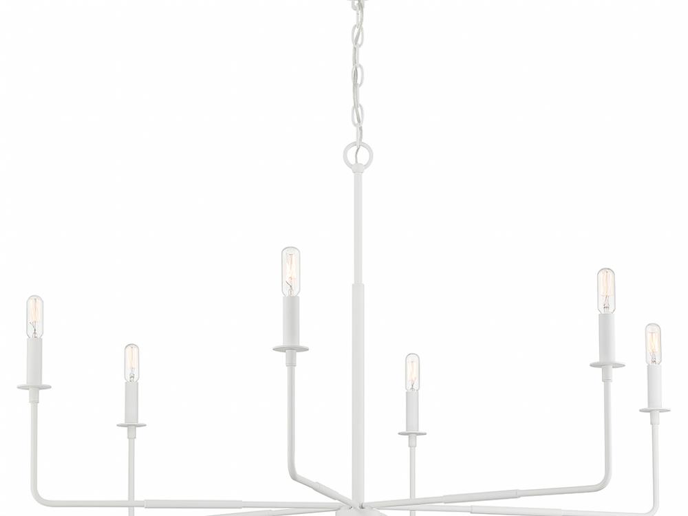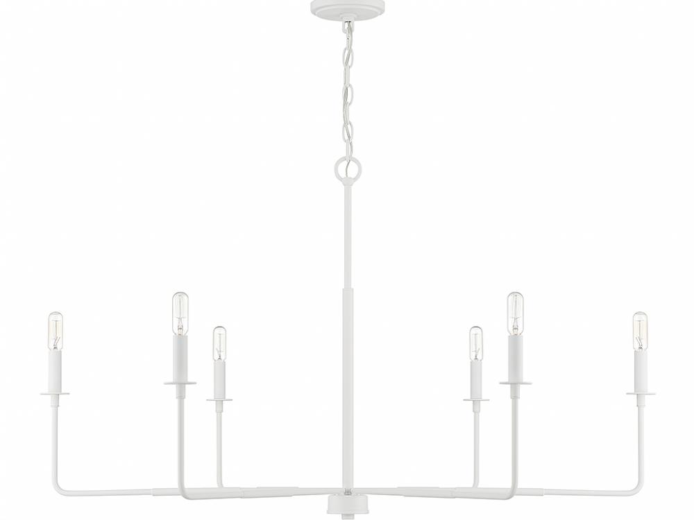 An expansive reach and rustic charm define the Savoy House Salerno 6-light chandelier. It beautifully enhances large rooms while not taking up too much visual space or attention. Finished in White Bisque. Salerno is 25" in height and 42" in width. It uses 6 candelabra size bulbs of up to 60 watts each (bulbs not included).