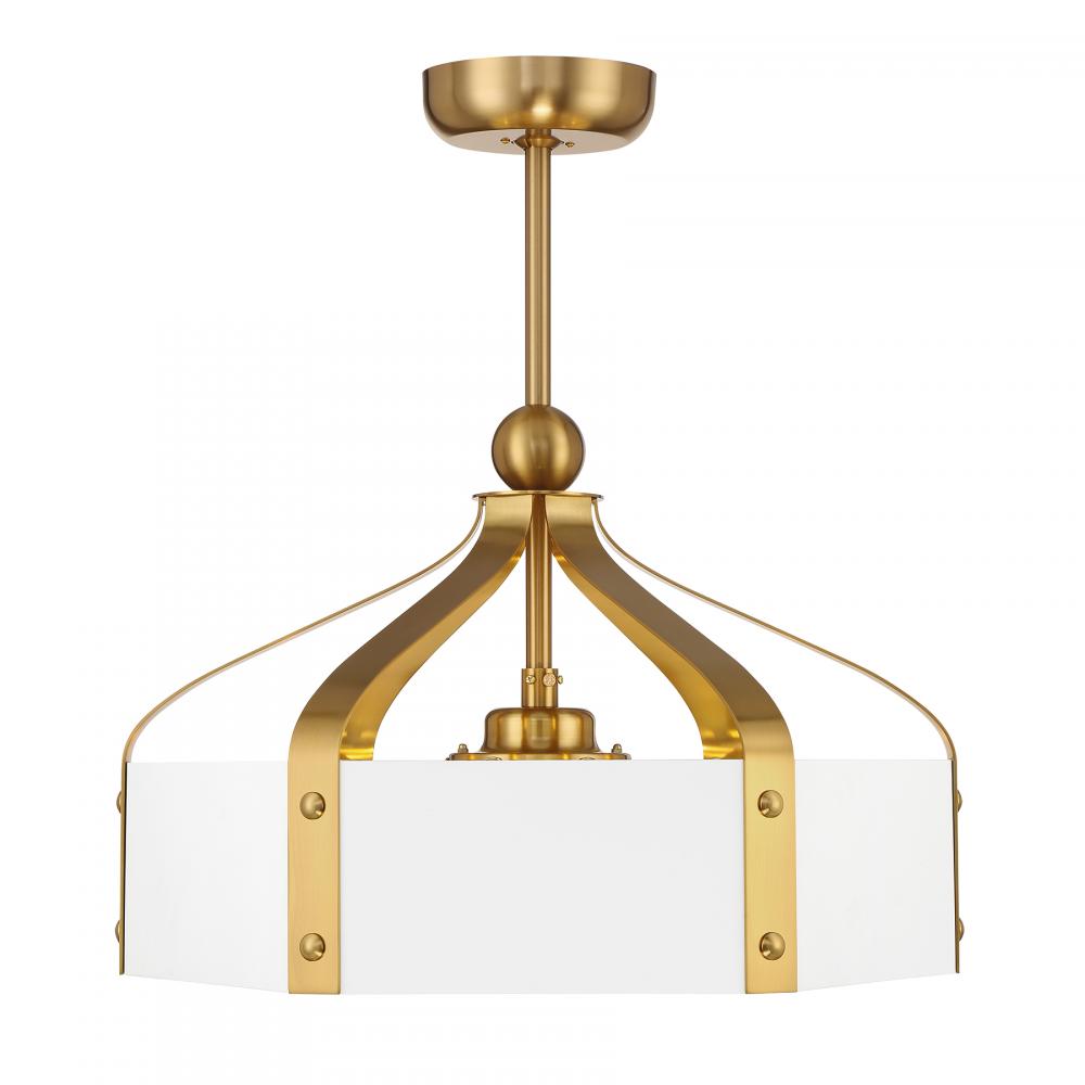The Savoy House Sheffield 6-light Fan D'Lier offers up a beautiful, elegant and classic look with a lantern-like style and a White finish with Warm Brass accents. It is 27.75" in height and 26" in width. Uses six candelabra size bulbs of up to 60 watts per bulb. LED bulbs are included.