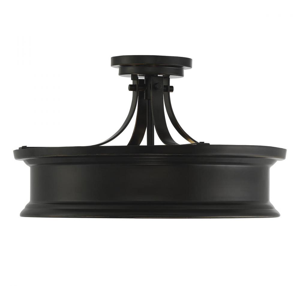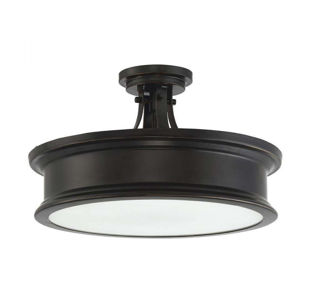 Sleek, sophisticated style with a traditional flair is yours when you choose this elegant Watkins fixture. The tasteful, multiple-ringed structure is reminiscent of vintage and Art Deco design — but the streamlined, circular shape has a modern sensibility. The dark, classic bronze finish adds a timeless note, too. A white, opal glass shade covers three 60W E-style bulbs for excellent illumination without any glare. Graceful curves form the semi-flush mounting. 16” wide by 9” high is the perfect size for so many spaces in your home: living room, dining area, family & great rooms, kitchen, foyer, hallway, bedroom, closet, dressing area, stairway, or home office. This Savoy House light fixture boasts extraordinarily good design and quality engineering, all in one stylish package.