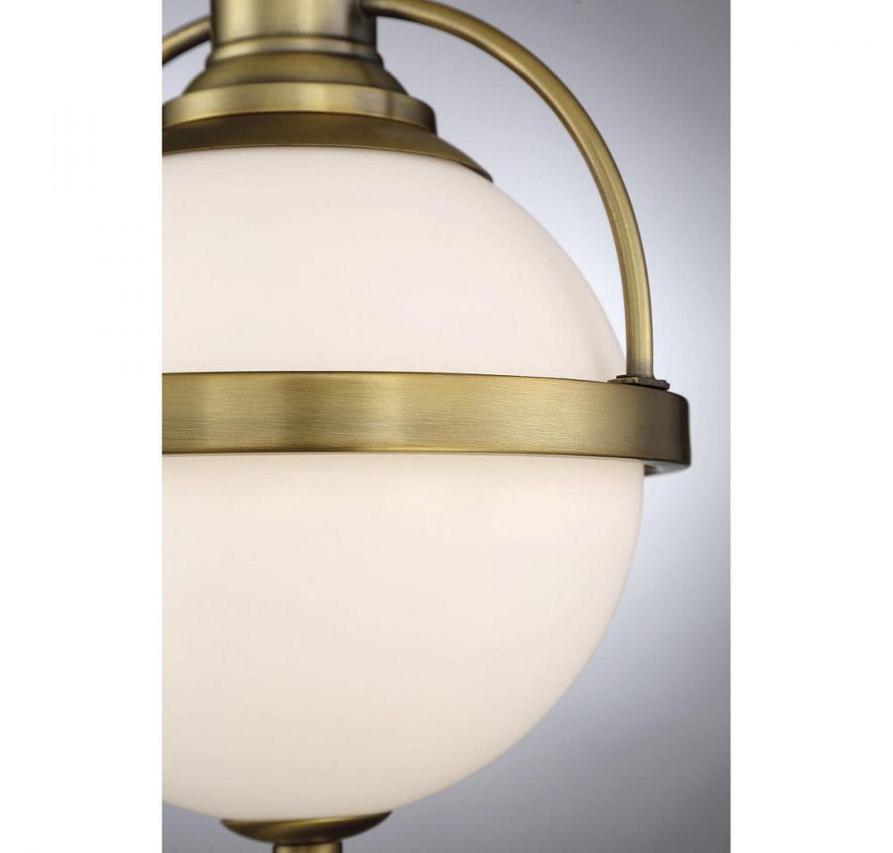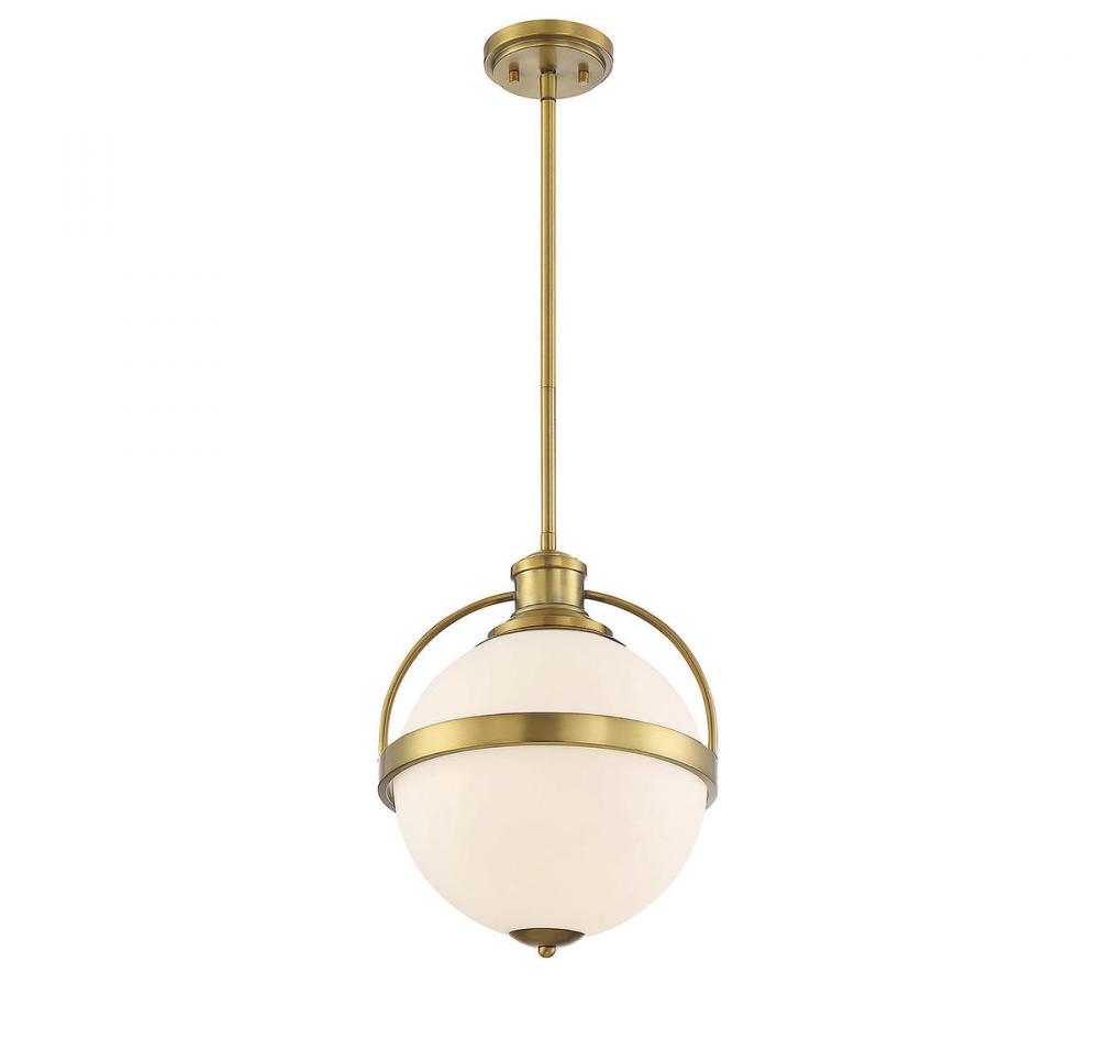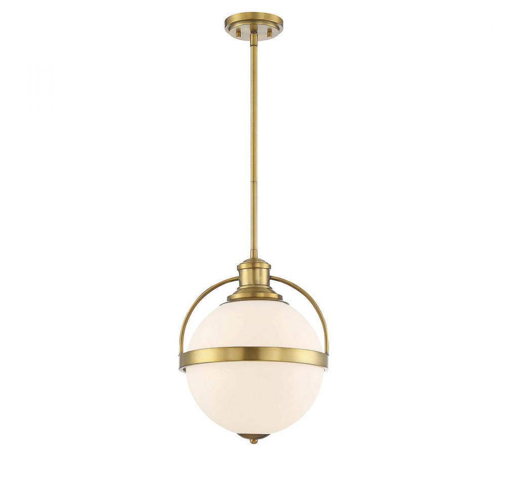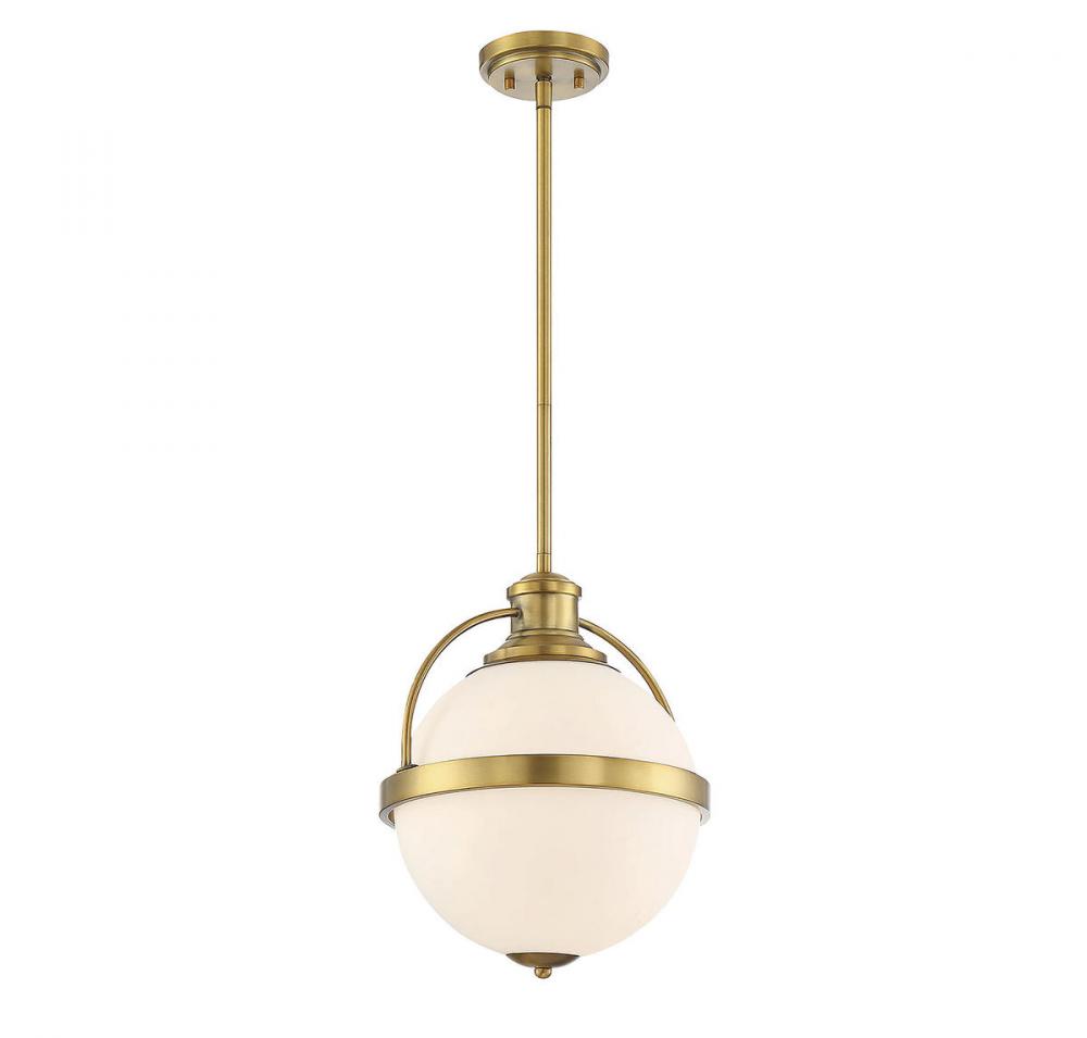 Vintage lighting style is updated for today's interiors in this Westbourne 1-light pendant by Savoy House. A white opal glass shade is accentuated with thoughtful detailing and a rich warm brass finish. Pendants are very versatile and can be used in many different indoor spaces, including kitchens, foyers, offices, great rooms, bedrooms and even bathrooms. The hanging height is adjustable and it can be used on a sloped ceiling. Bulb not included. The warm brass finish can be matched with brass hardware or mixed with hardware in other finishes. Westbourne pendants are a perfect match for transitional style rooms, but great for classic style as well! When you choose a Savoy House lighting fixture, you can be certain you've selected a piece that will withstand the test of time.