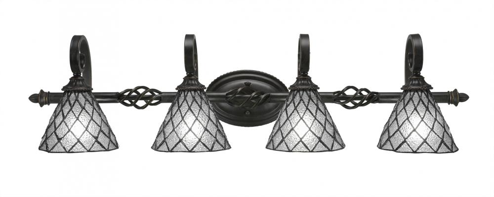 Toltec Lighting 164-DG-9185 Elegant? 4 Light Bath Bar Shown In Dark Granite Finish With 7 Diamond Ice Art Glass