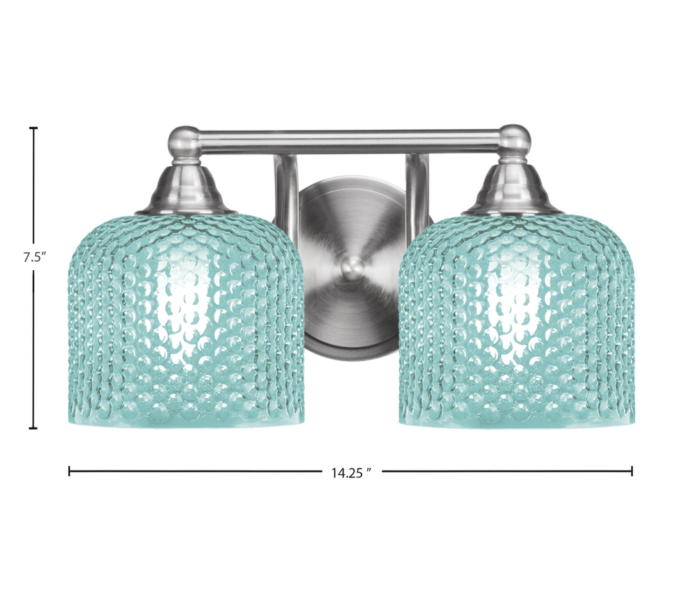 Paramount 2 Light Bath Bar Shown In Brushed Nickel Finish With 6 Turquoise Textured Glass
