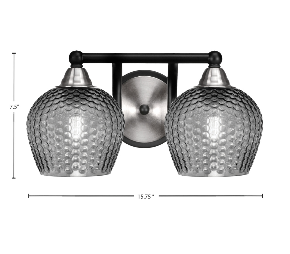 Paramount 2 Light Bath Bar Shown In Matte Black & Brushed Nickel Finish With 6 Smoke Textured Glass