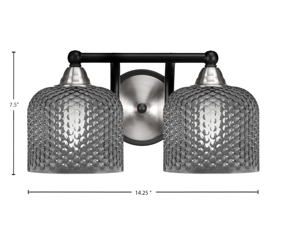 Paramount 2 Light Bath Bar Shown In Matte Black & Brushed Nickel Finish With 6 Smoke Textured Glass