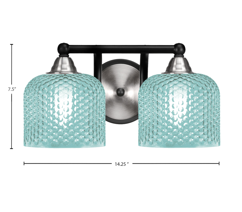 Paramount 2 Light Bath Bar Shown In Matte Black & Brushed Nickel Finish With 6 Turquoise Textured Glass