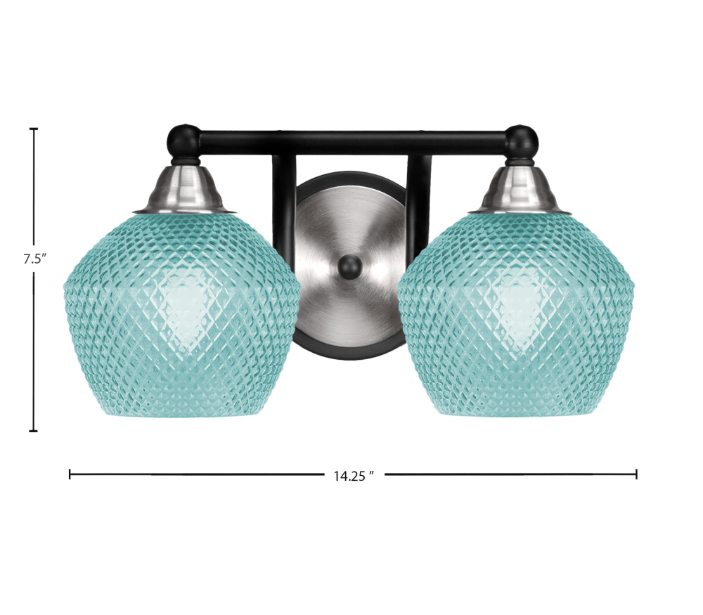 Paramount 2 Light Bath Bar Shown In Matte Black & Brushed Nickel Finish With 6 Turquoise Textured Glass