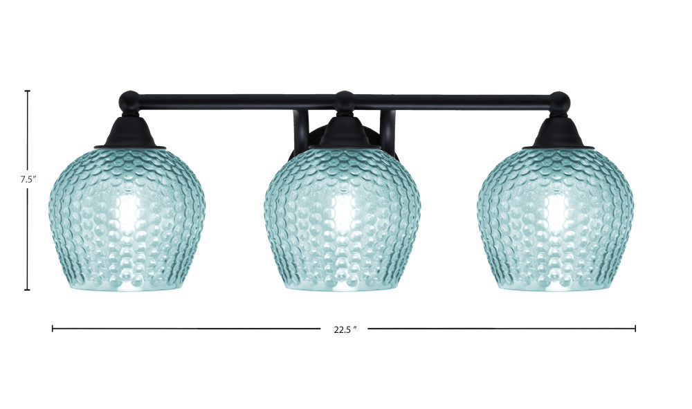Paramount 3 Light Bath Bar Shown In Matte Black Finish With 6 Turquoise Textured Glass
