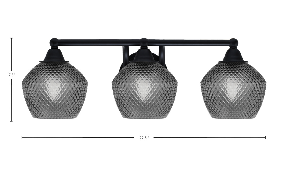 Paramount 3 Light Bath Bar Shown In Matte Black Finish With 6 Smoke Textured Glass