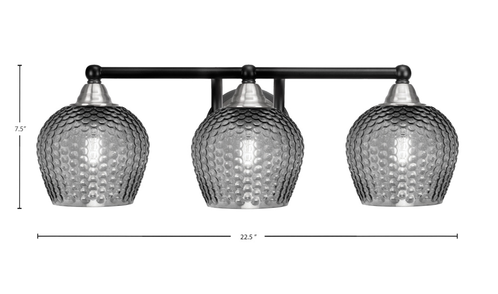 Paramount 3 Light Bath Bar Shown In Matte Black Finish With 6 Smoke Textured Glass