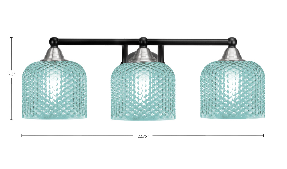 Paramount 3 Light Bath Bar Shown In Matte Black & Brushed Nickel Finish With 6 Turquoise Textured Glass