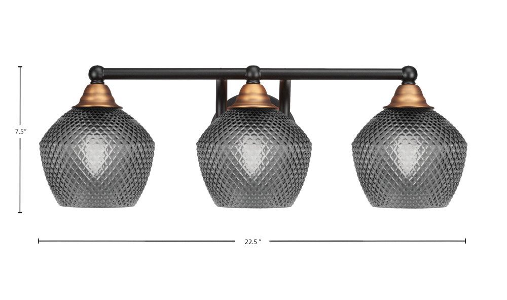 Paramount 3 Light Bath Bar Shown In Matte Black & Brass Finish With 6 Smoke Textured Glass