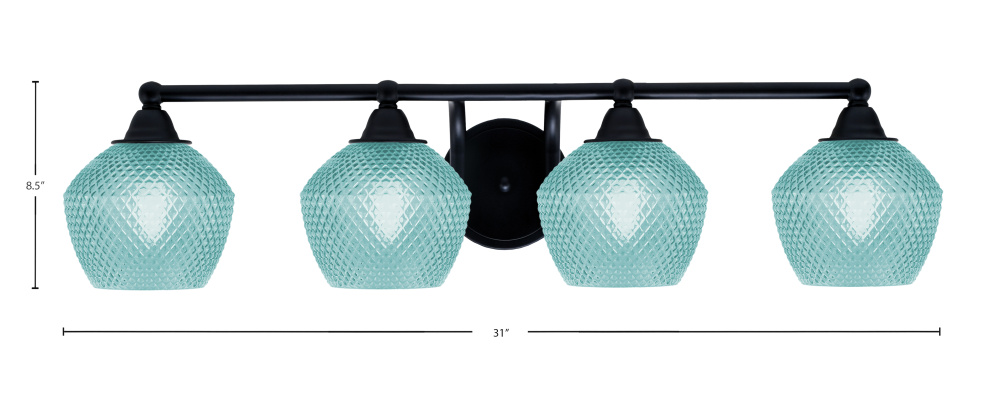 Paramount 4 Light Bath Bar Shown In Matte Black Finish With 6 Turquoise Textured Glass