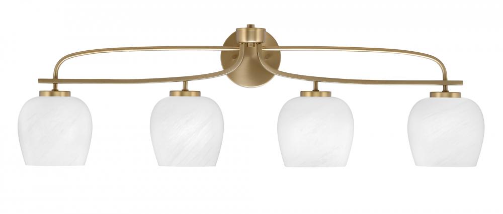 Toltec Lighting 3914-NAB-4811 Cavella 4 Light Bath Bar, New Age Brass Finish, 6 White Marble Glass