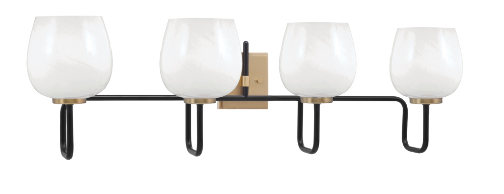 Sandia 4 Light Bath Bar, Matte Black & New Age Brass Finish, 6 White Marble Glass