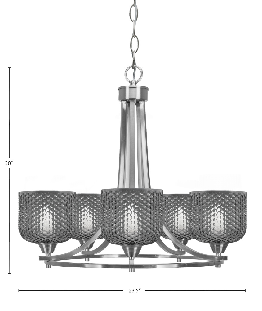 Paramount 5 Light Uplight Chandelier Shown In Brushed Nickel Finish With 6 Smoke Textured Glass