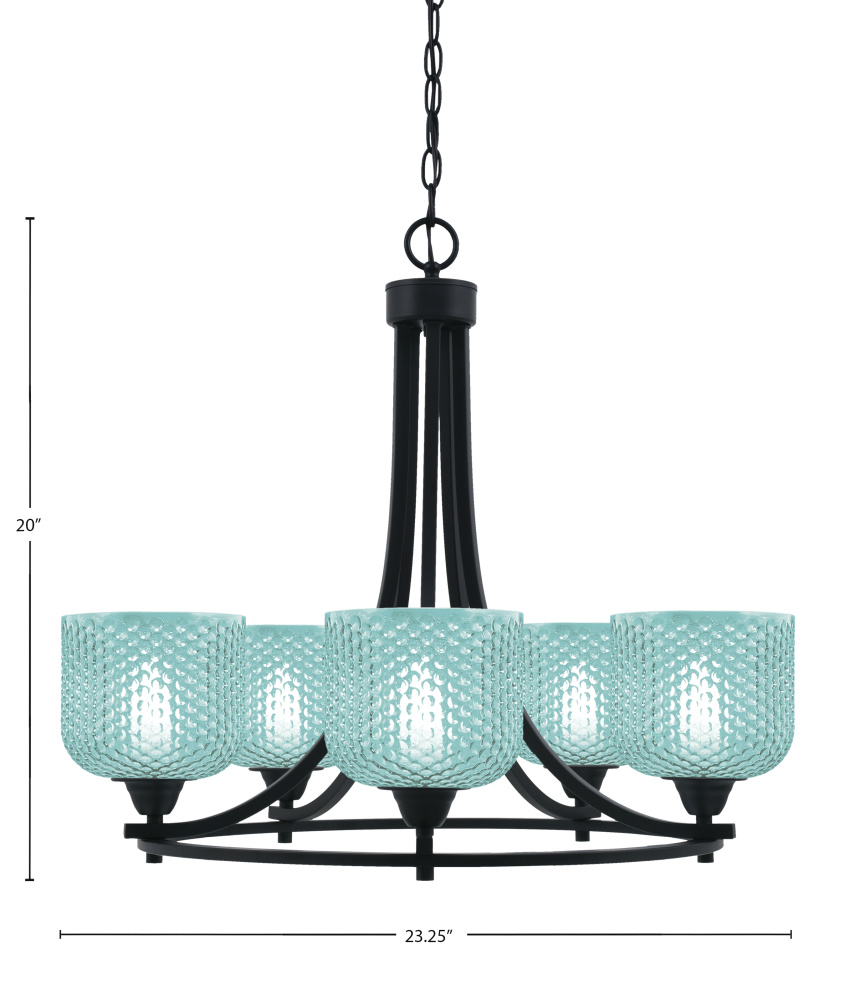 Paramount 5 Light Uplight Chandelier Shown In Matte Black Finish With 6 Turquoise Textured Glass